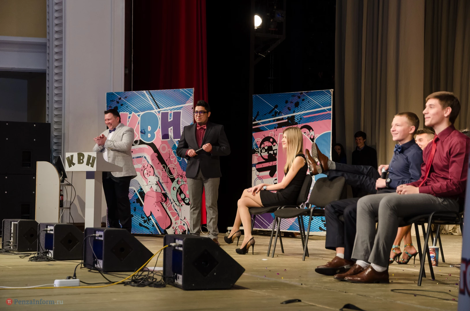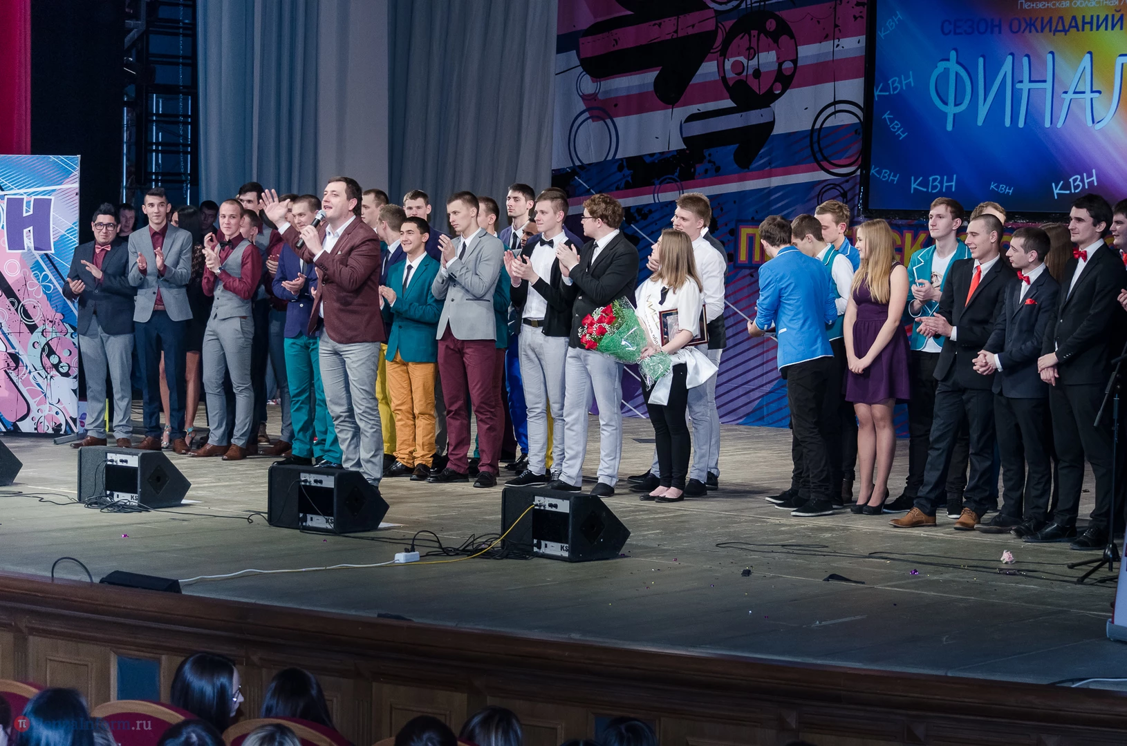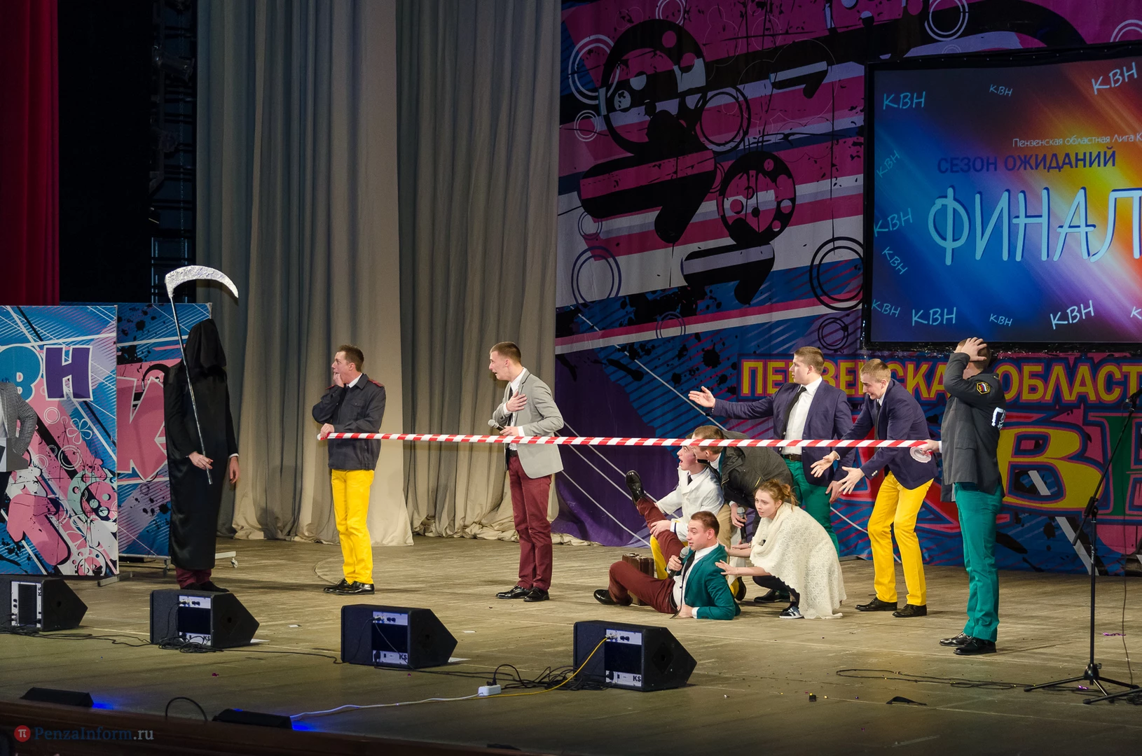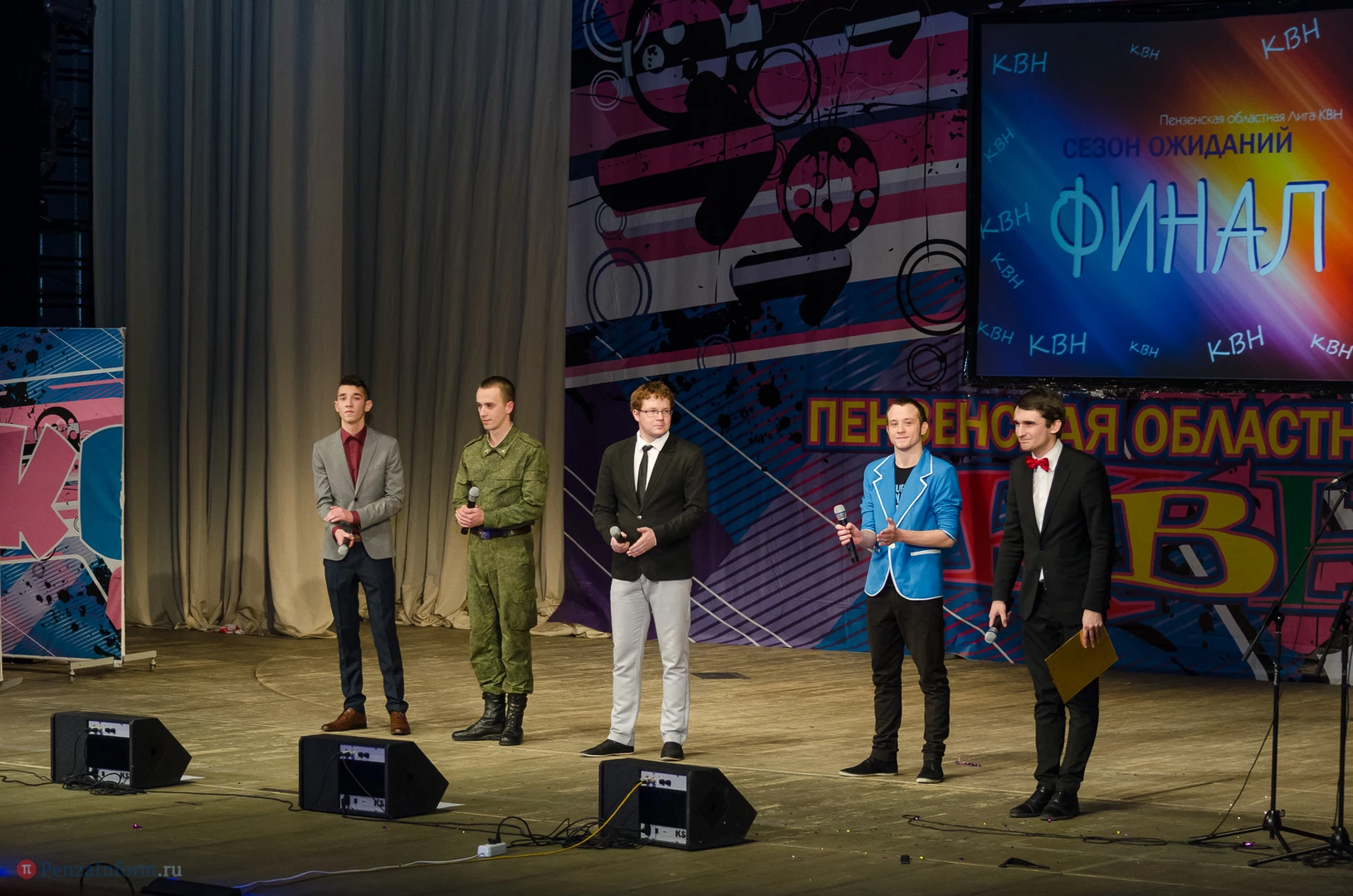 Пять команд Пензы и Заречного: «13-й поворот» ПГУ, «План «Б», «Сборная Пемзы», «Салла Колимов» и «Контрольный выстрел» встретились в финальной схватке на сцене Пензенского областного драматического театра.