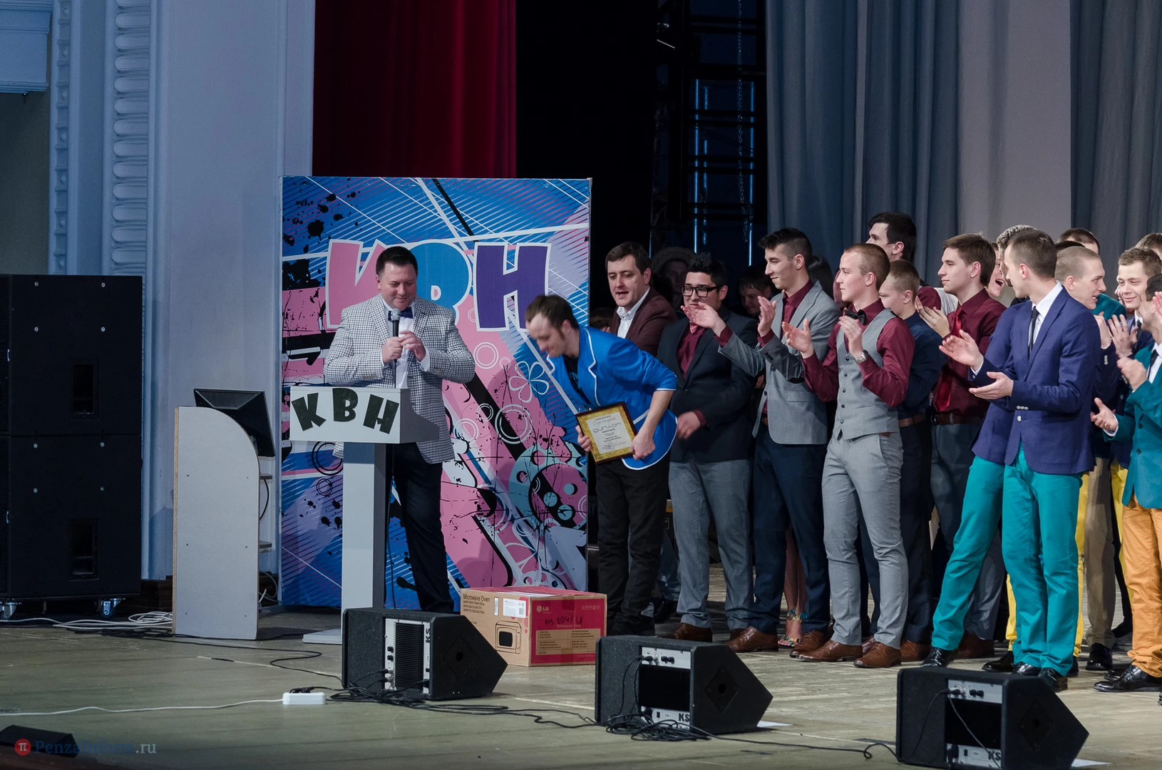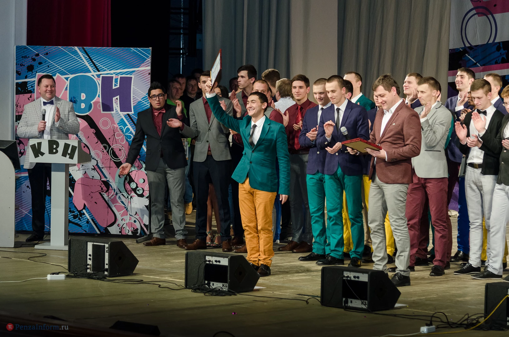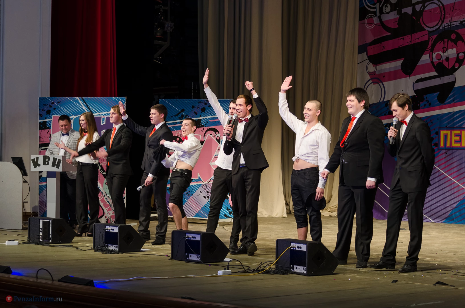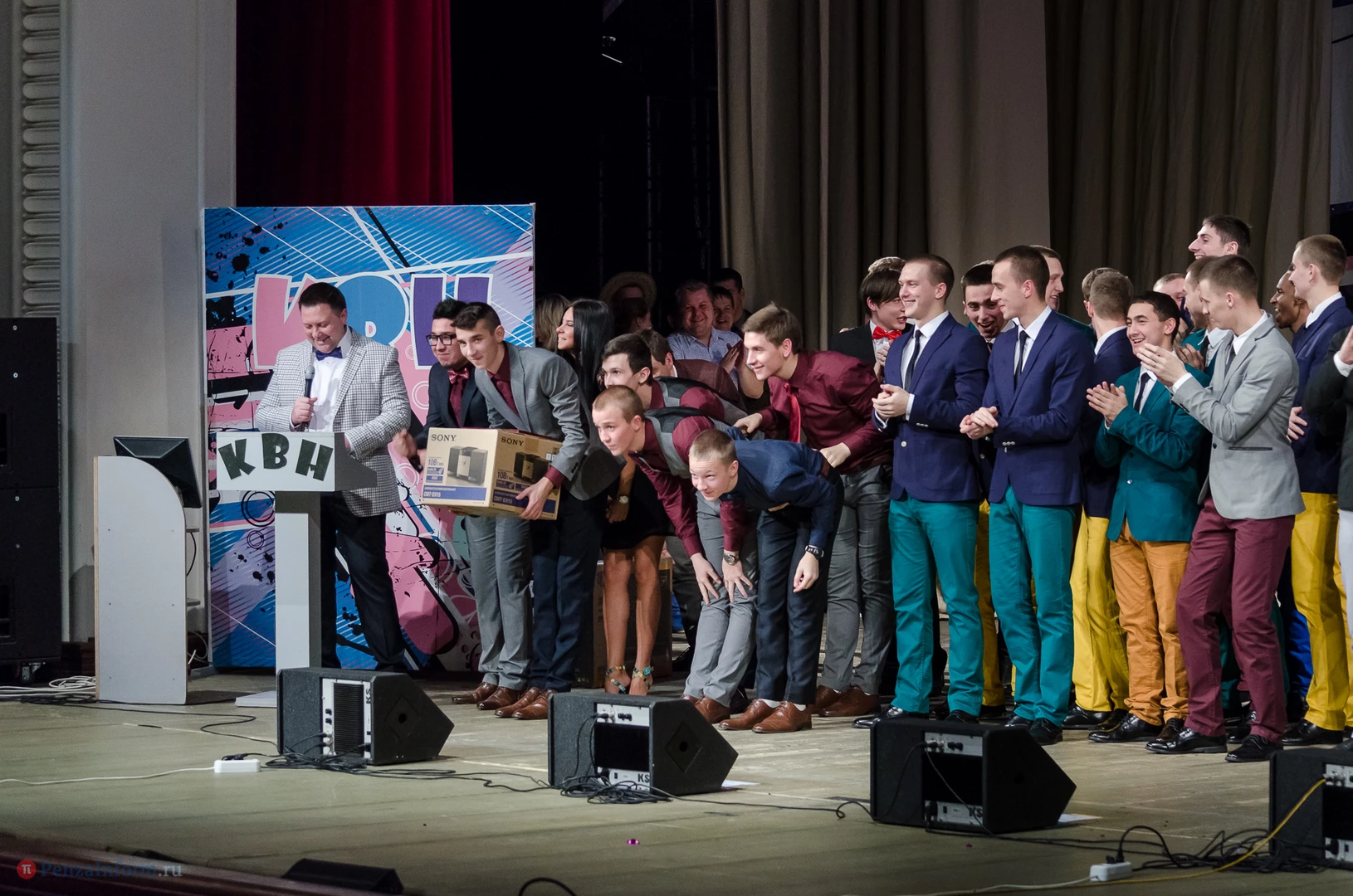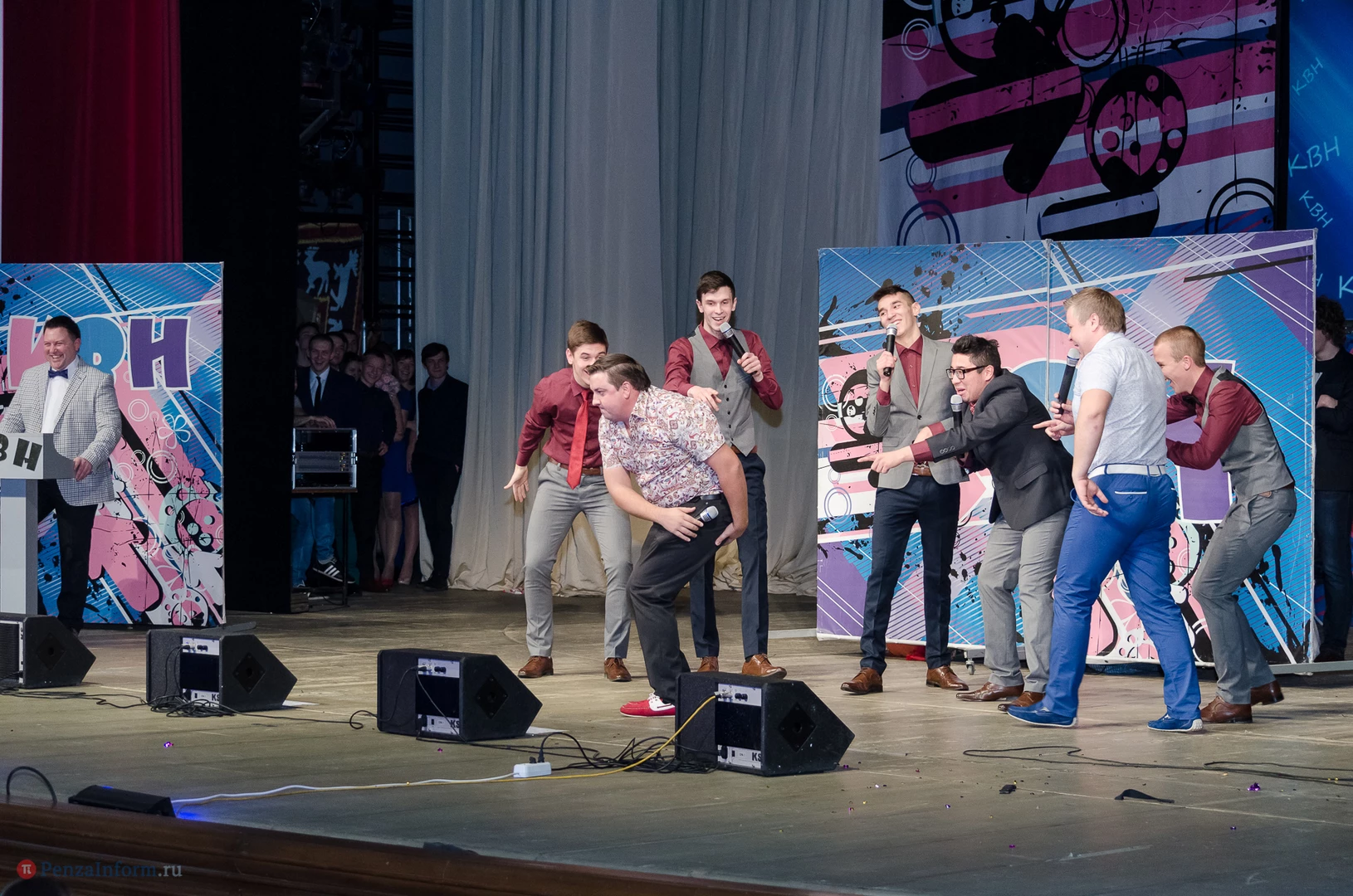 Пять команд Пензы и Заречного: «13-й поворот» ПГУ, «План «Б», «Сборная Пемзы», «Салла Колимов» и «Контрольный выстрел» встретились в финальной схватке на сцене Пензенского областного драматического театра.