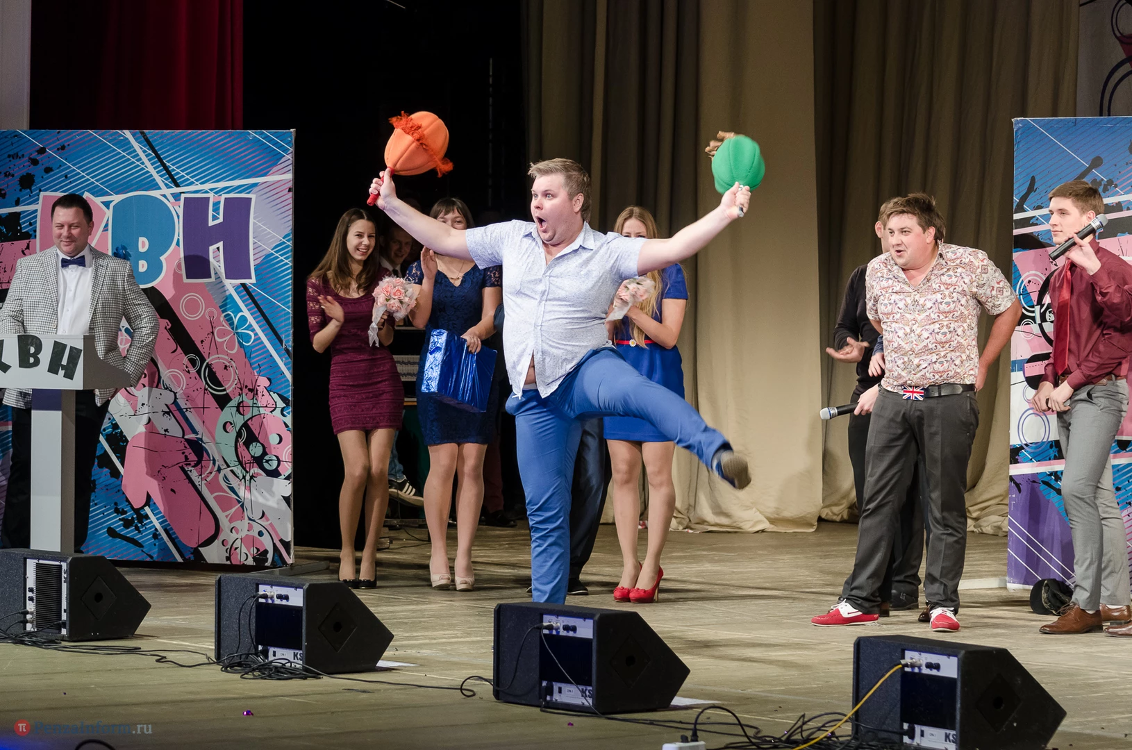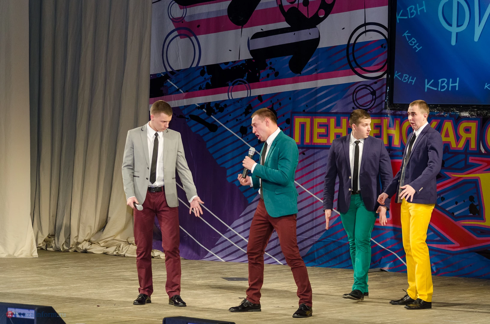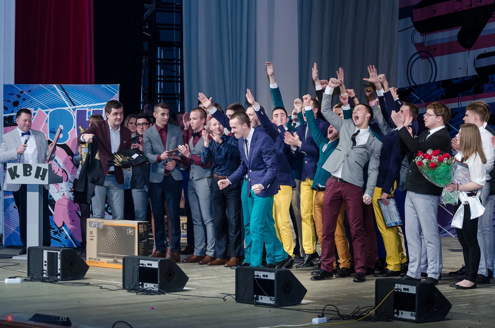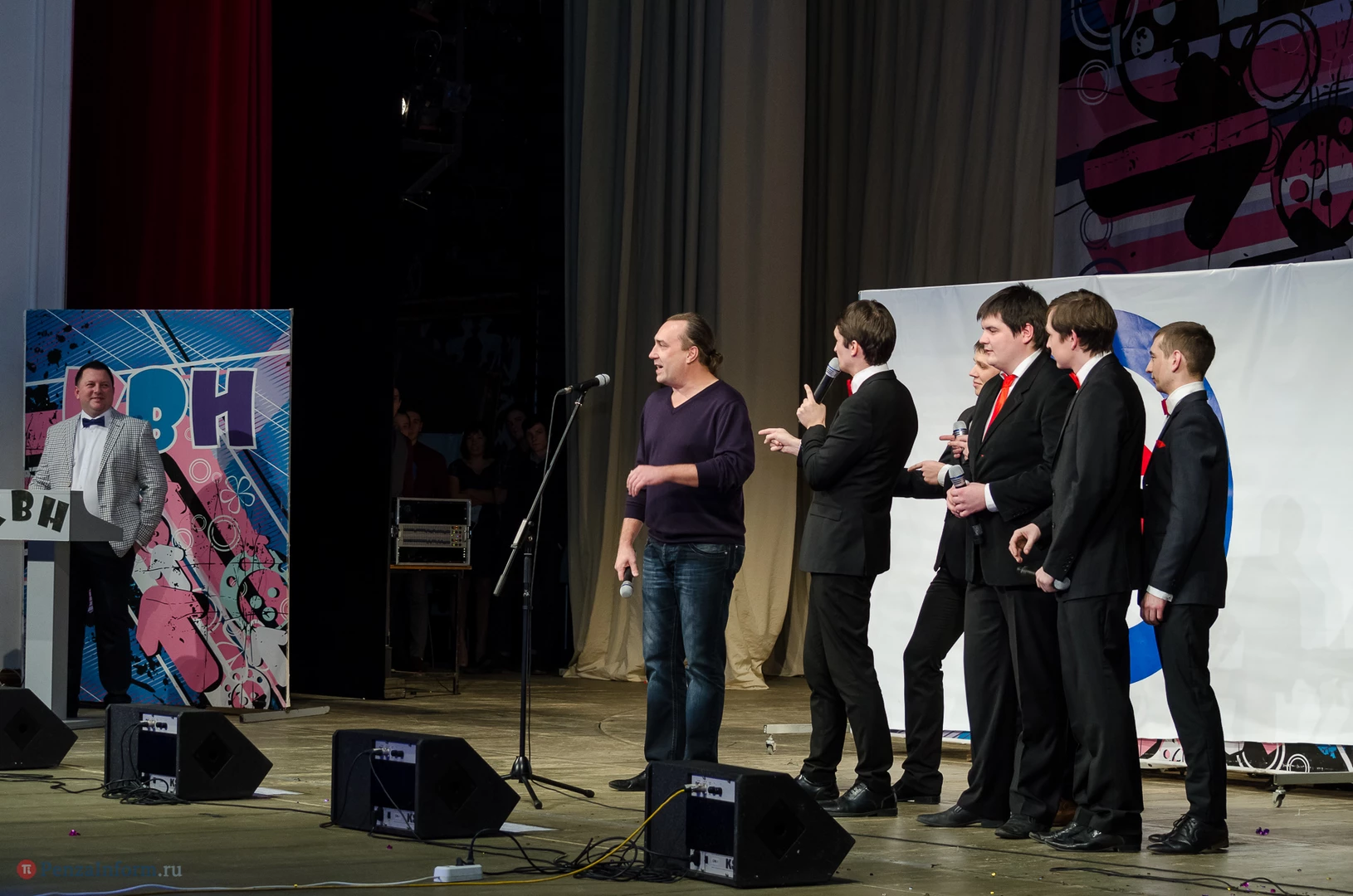 Пять команд Пензы и Заречного: «13-й поворот» ПГУ, «План «Б», «Сборная Пемзы», «Салла Колимов» и «Контрольный выстрел» встретились в финальной схватке на сцене Пензенского областного драматического театра.
