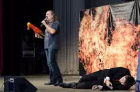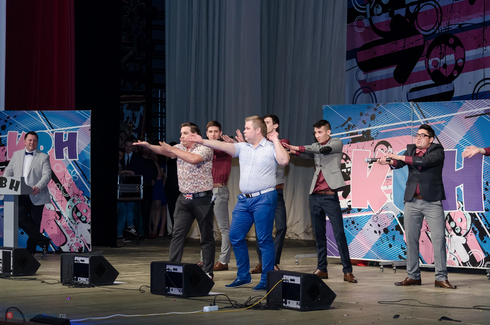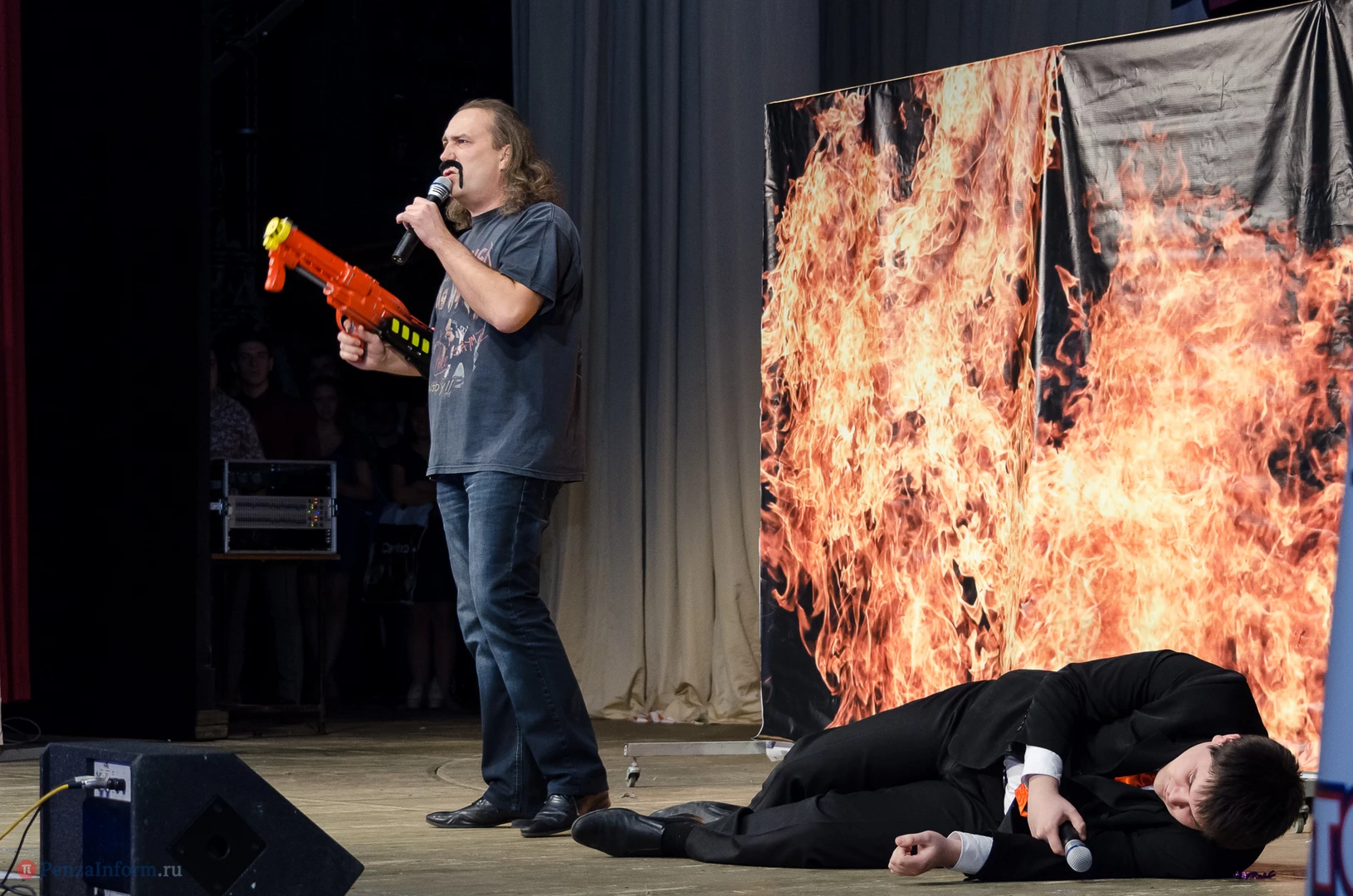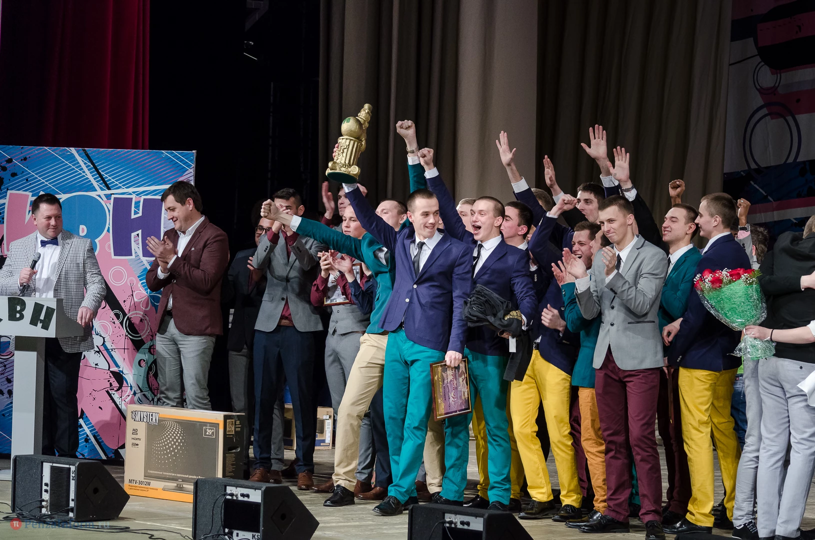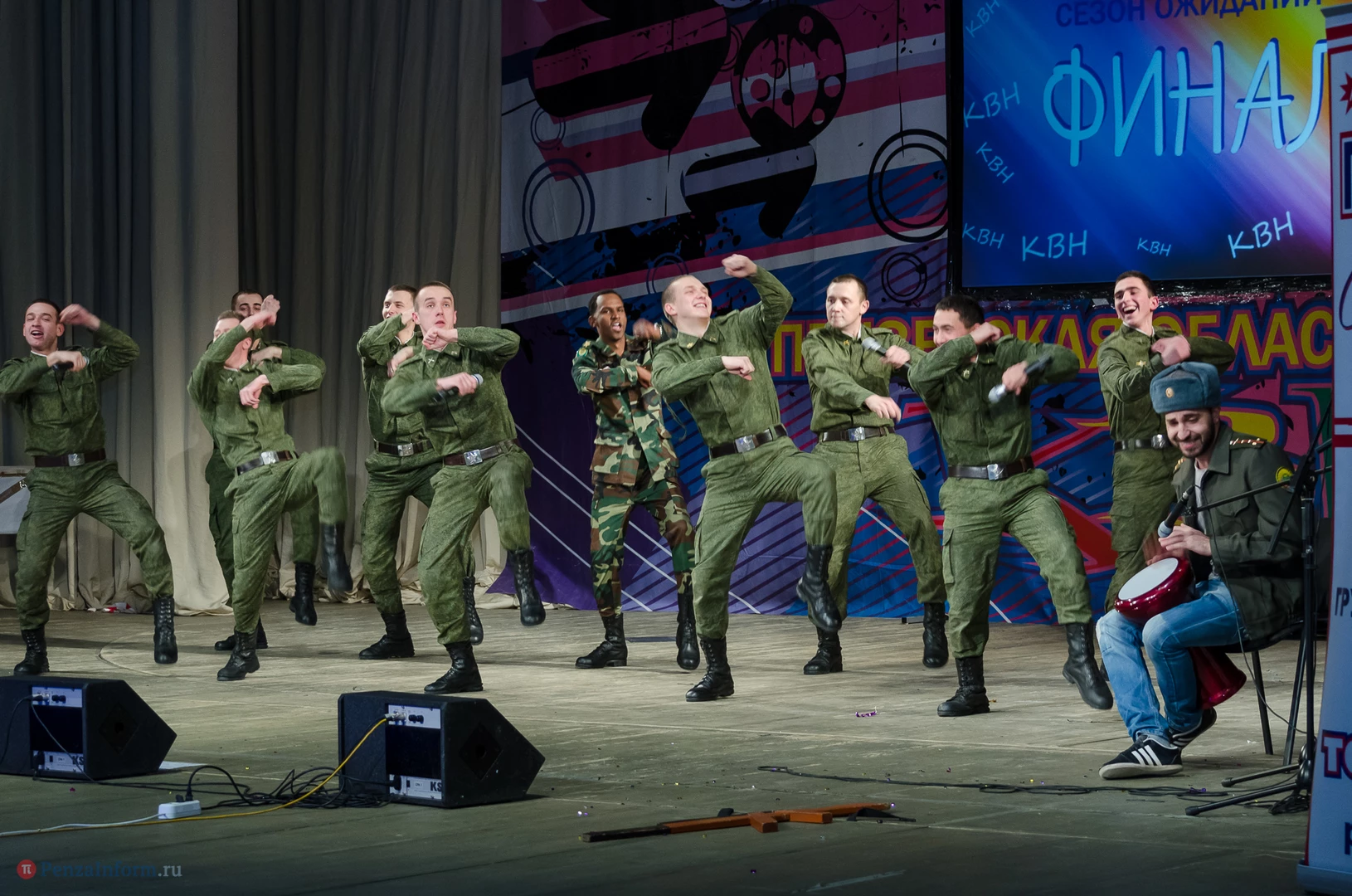 Пять команд Пензы и Заречного: «13-й поворот» ПГУ, «План «Б», «Сборная Пемзы», «Салла Колимов» и «Контрольный выстрел» встретились в финальной схватке на сцене Пензенского областного драматического театра.