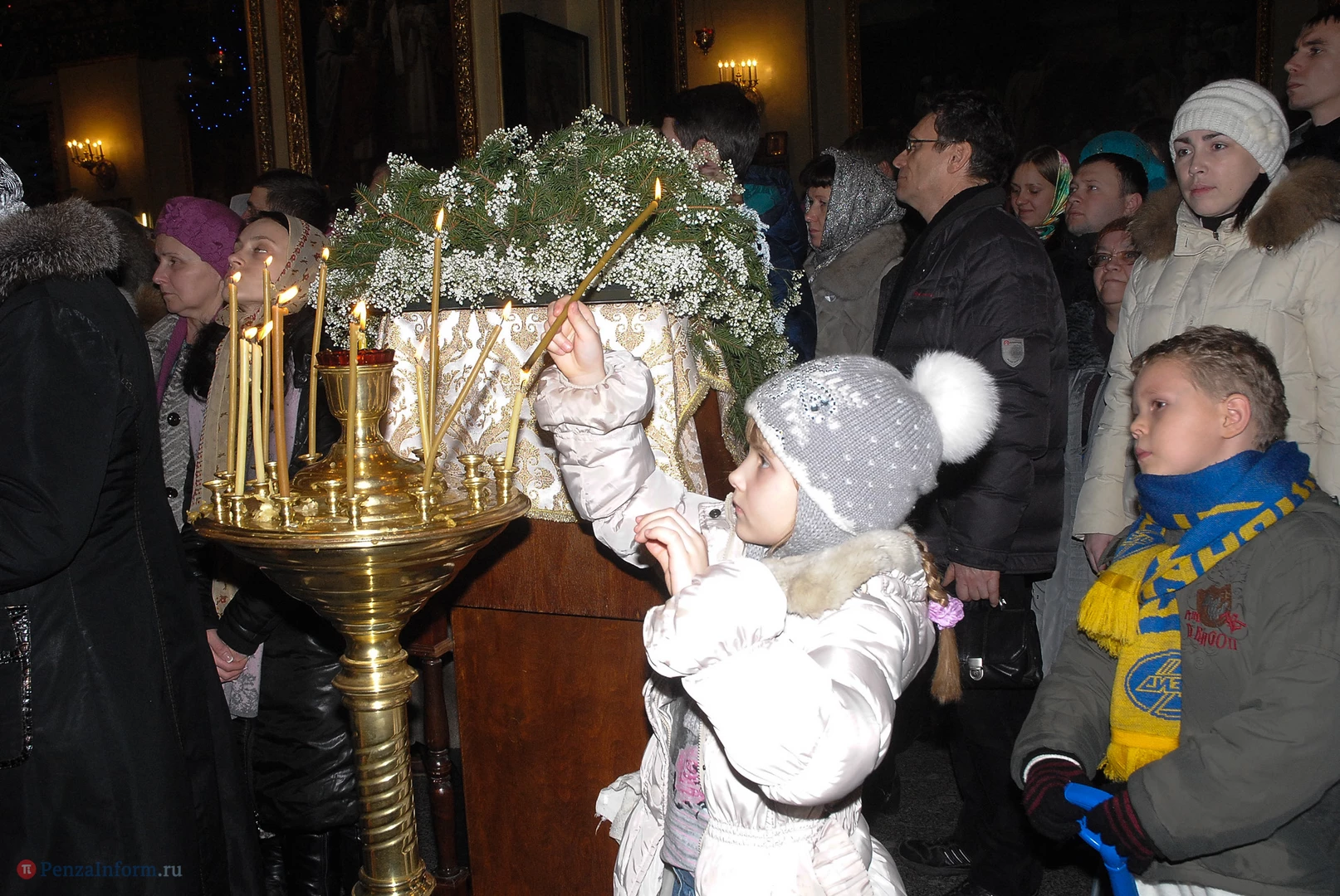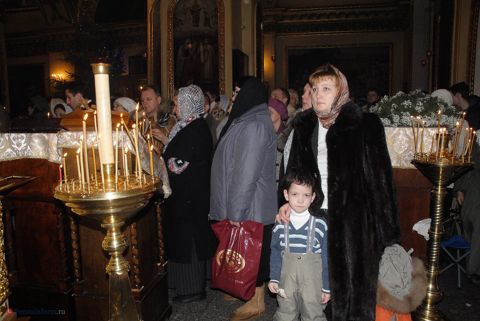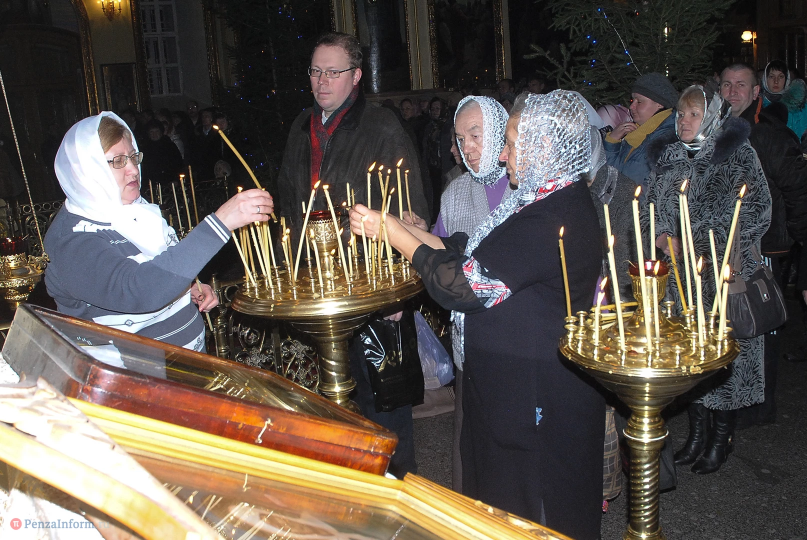 Пензенцы начали стекаться в храмы за несколько часов до праздничной литургии. Рождество - второй по значимости праздник у верующих после Пасхи. В Успенском кафедральном соборе в полночь собрались тысячи людей. Все пришли послушать, как владыка Вениамин будет прославлять рождение Иисуса Христа.