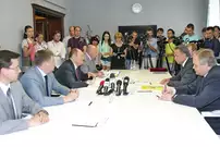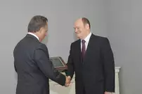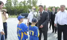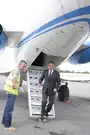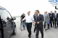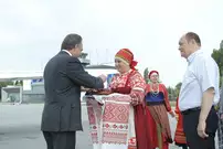 В аэропорту гостя встретили губернатор Василий Бочкарев, заместитель председателя правительства Владимир Мальцев и председатель областного спорткомитета Артур Пантелеев.