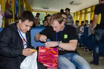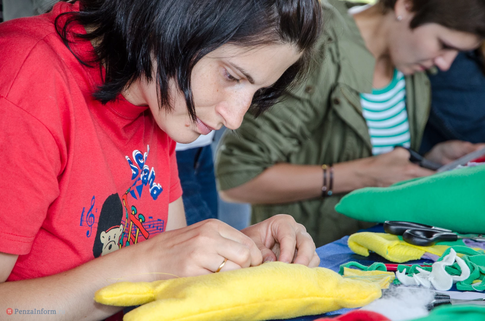 В то время, пока «айтишники» общались на четырех сессиях, которые шли параллельно, их боевые подруги посещали бесплатные мастер-классы по йоге, вязанию и шитью мягких игрушек-ксениксов. Желающие даже могли сшить талисман IT-слета - Слетмана.