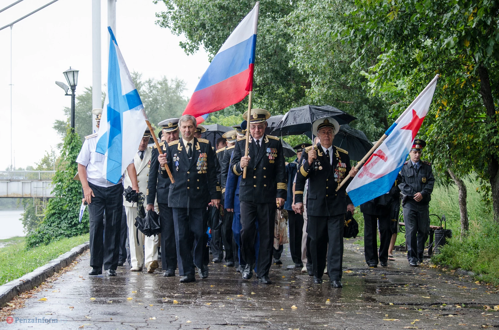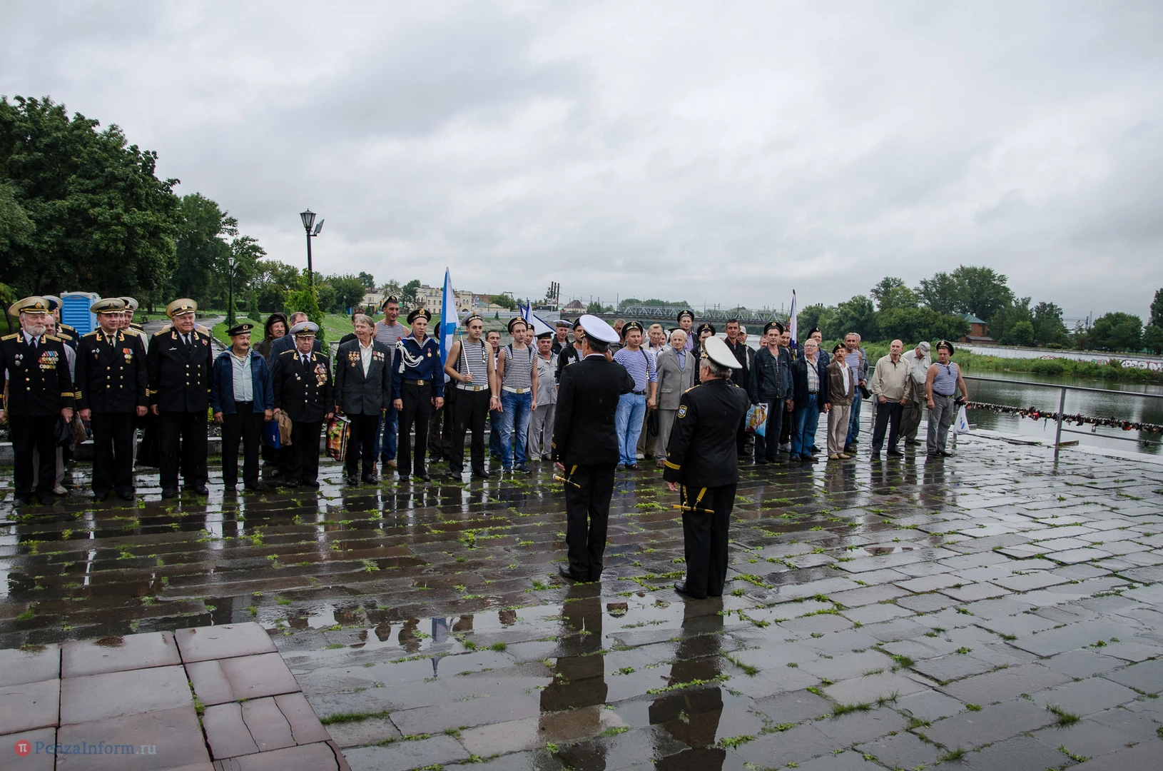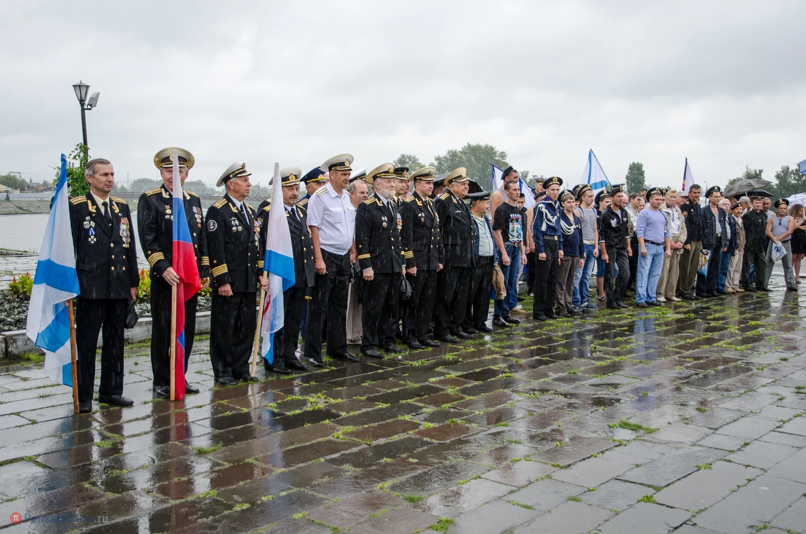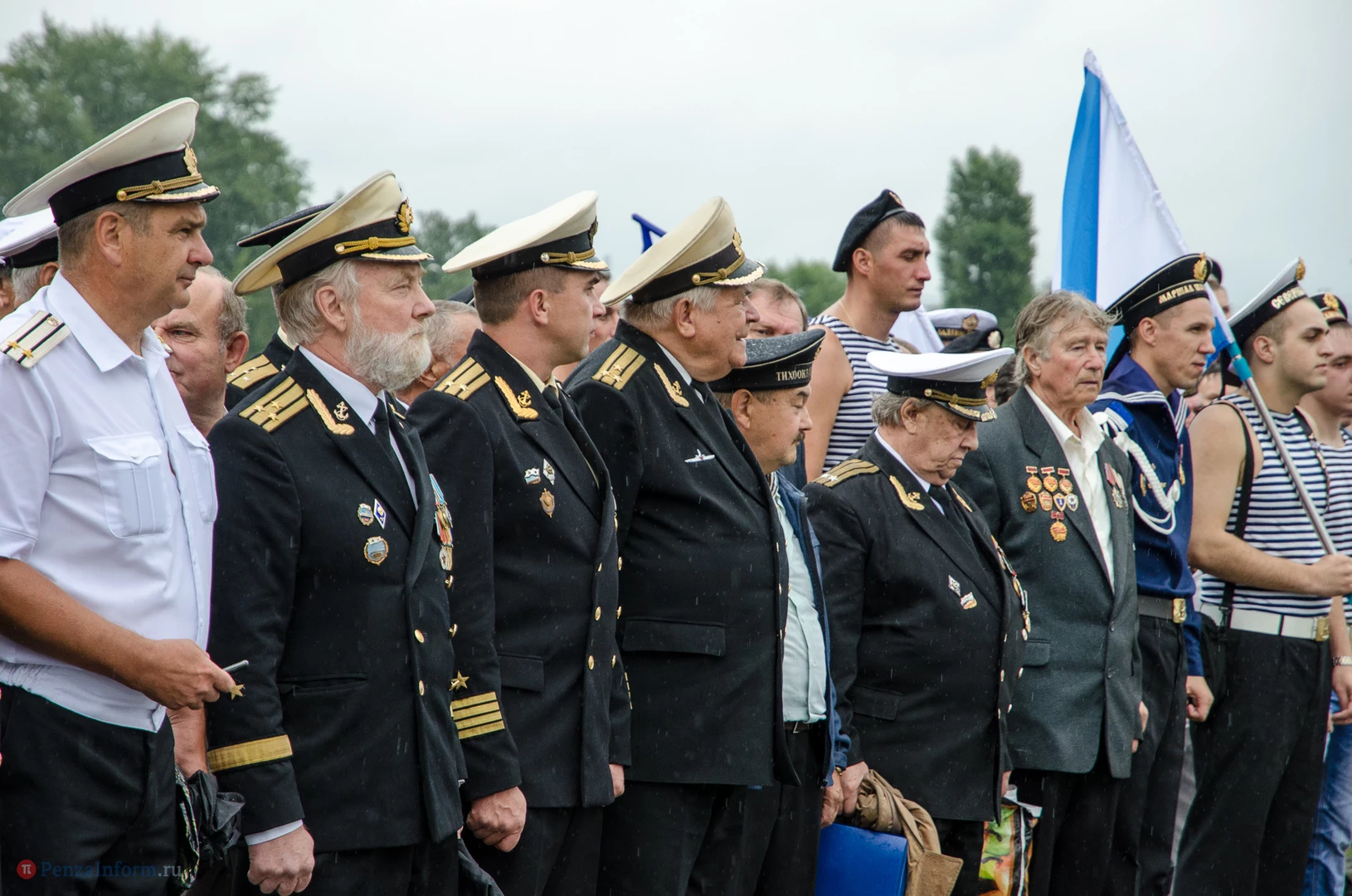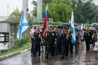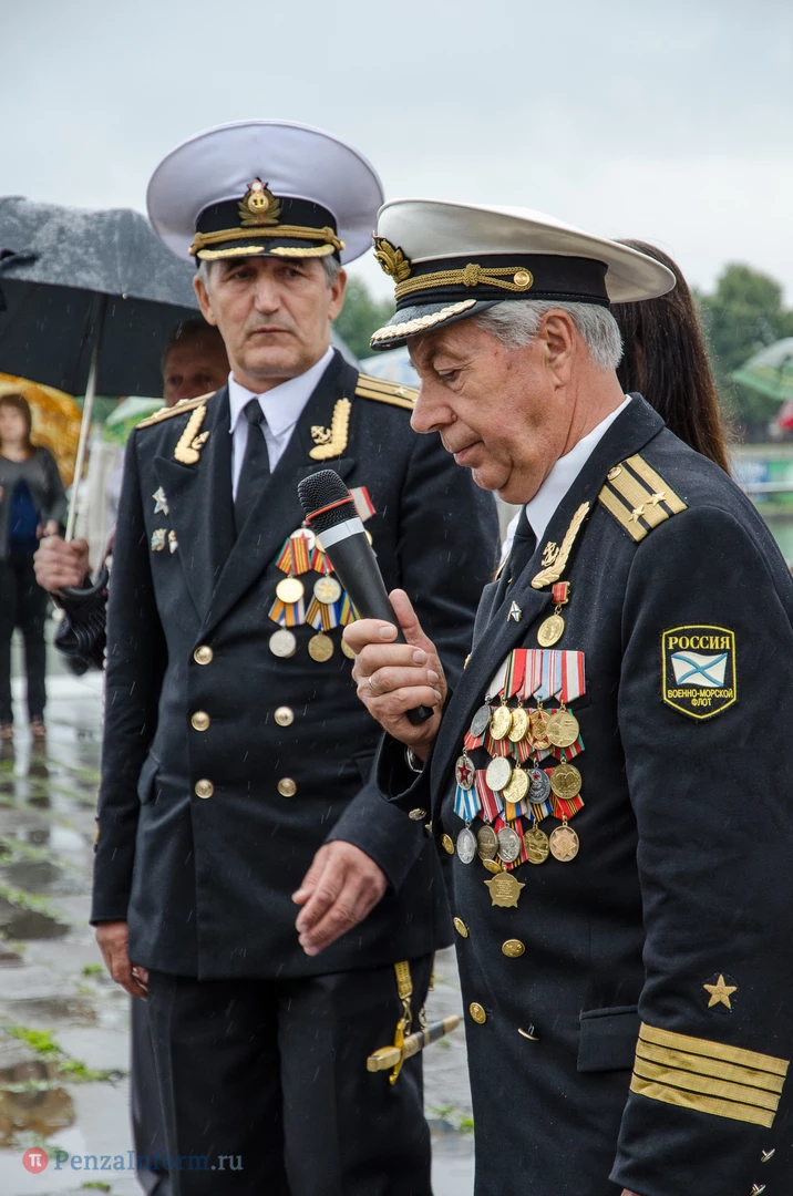 Региональная общественная организация «Пензенское морское собрание» торжественным маршем и построением отметила День ВМФ. Бывалым морякам ливень нисколько не помешал выслушать поздравления от молодежи, председателя Морского собрания, капитана 1-го ранга запаса, Цигвинцева Сергея Алексеевича и всех тех, кому дорог и близок этот день.