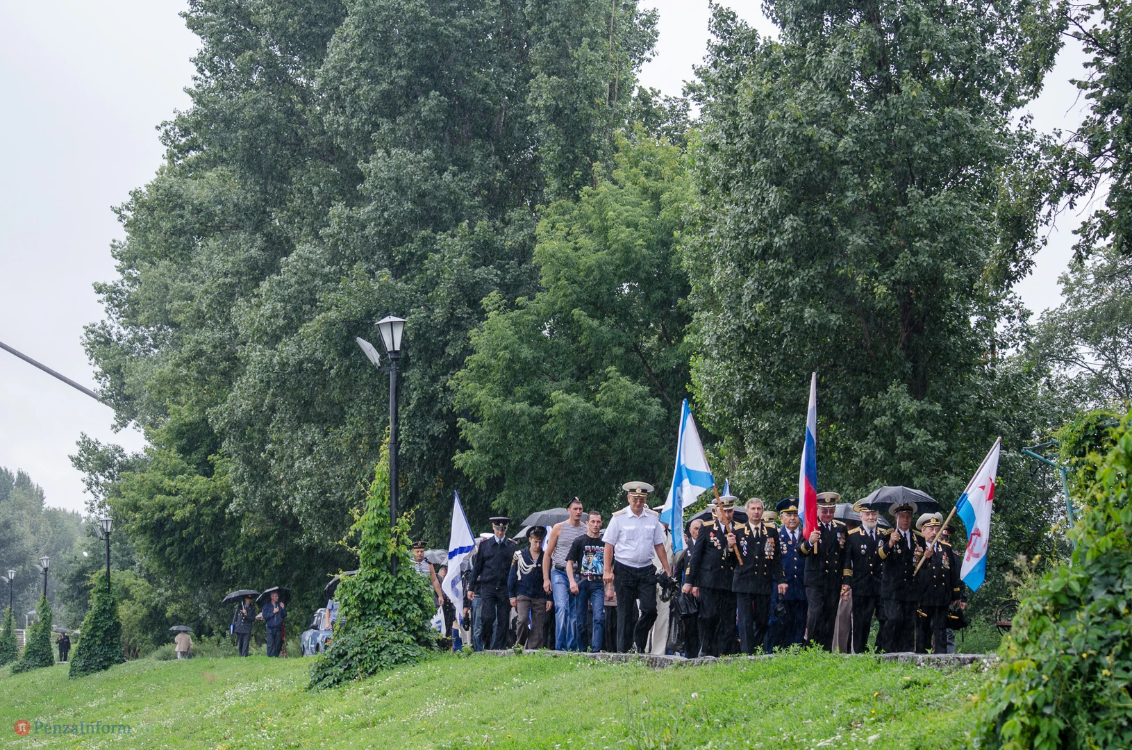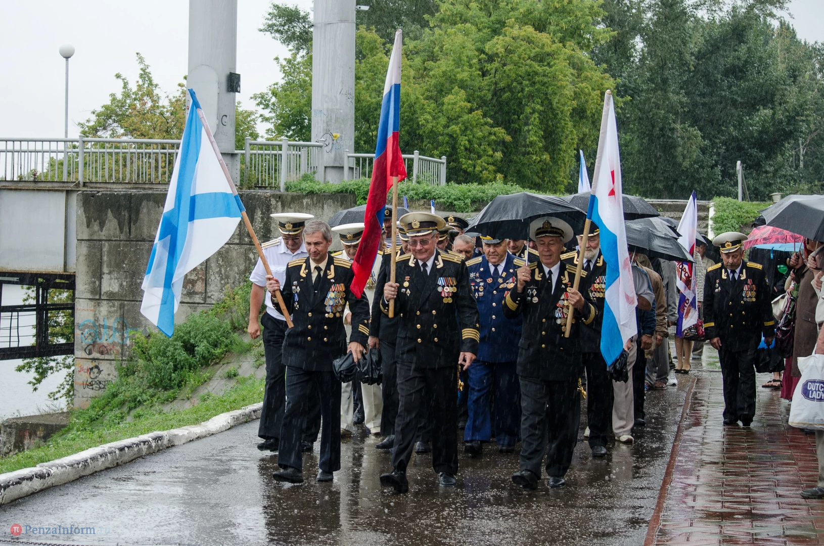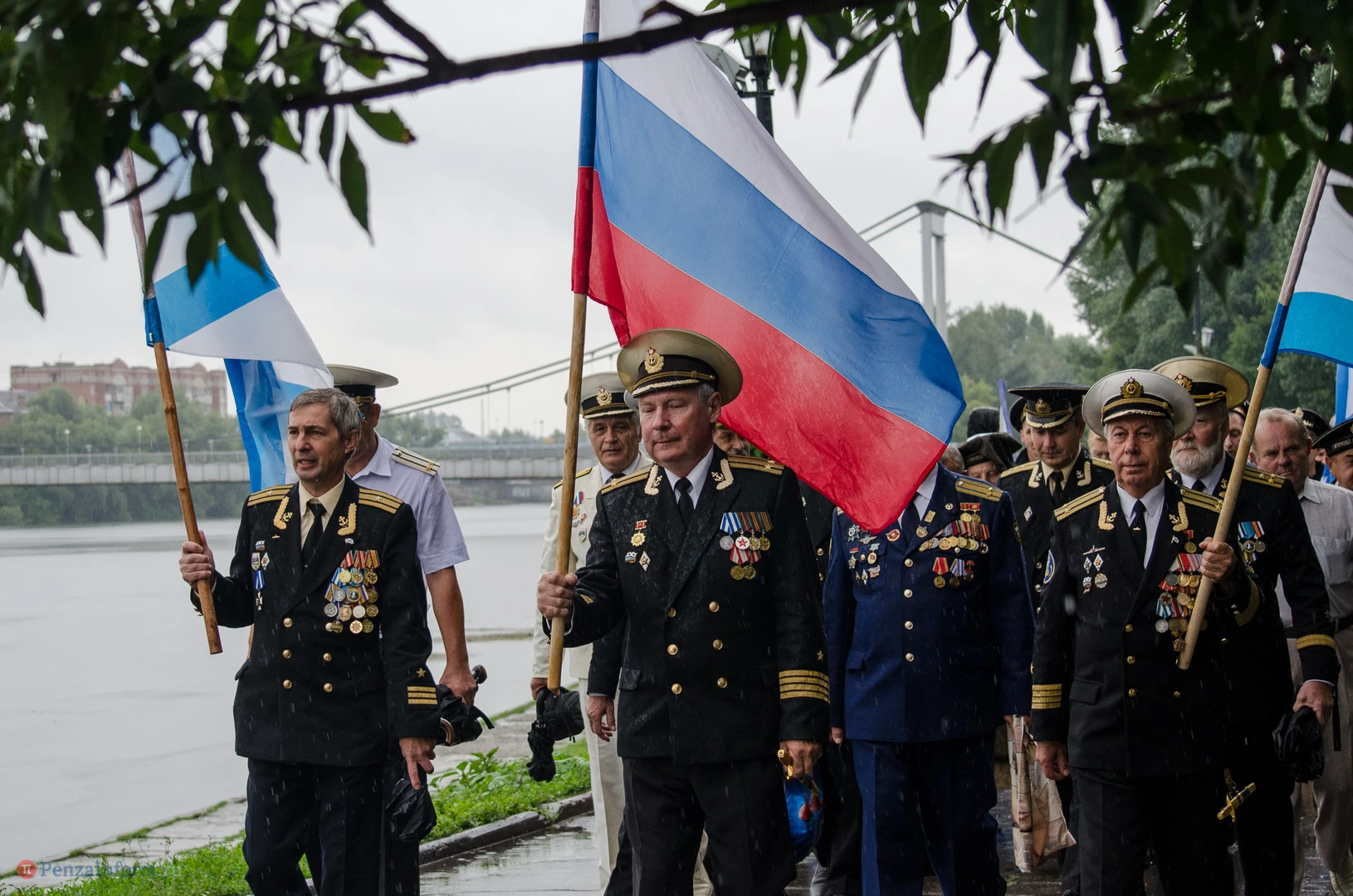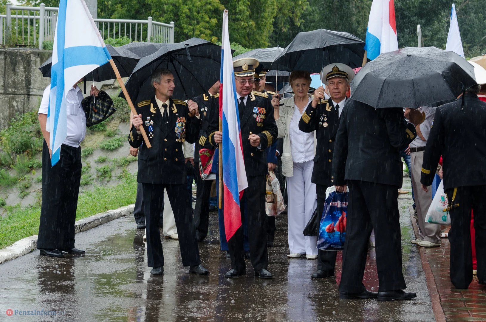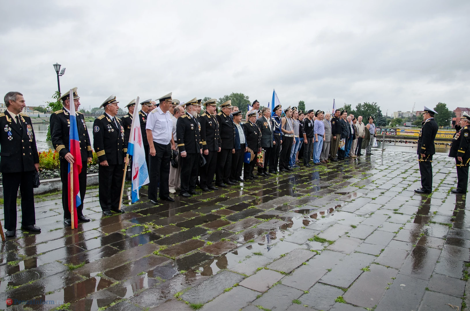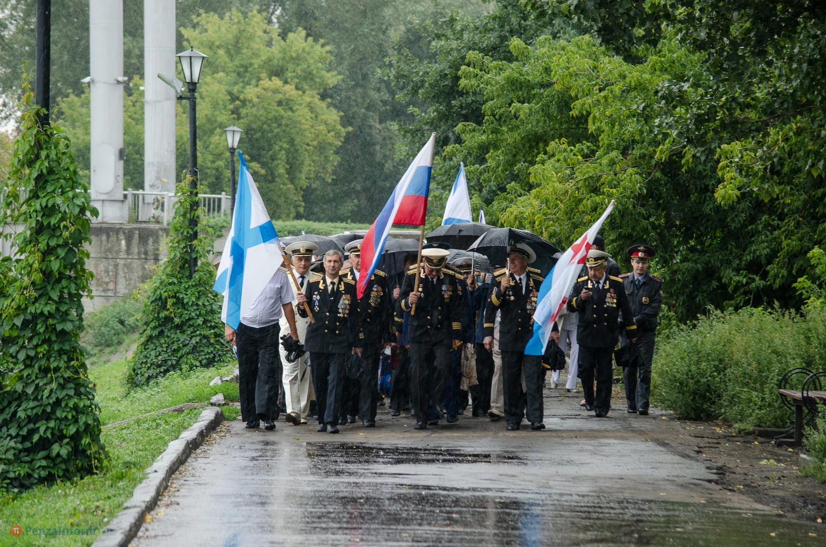 Региональная общественная организация «Пензенское морское собрание» торжественным маршем и построением отметила День ВМФ. Бывалым морякам ливень нисколько не помешал выслушать поздравления от молодежи, председателя Морского собрания, капитана 1-го ранга запаса, Цигвинцева Сергея Алексеевича и всех тех, кому дорог и близок этот день.