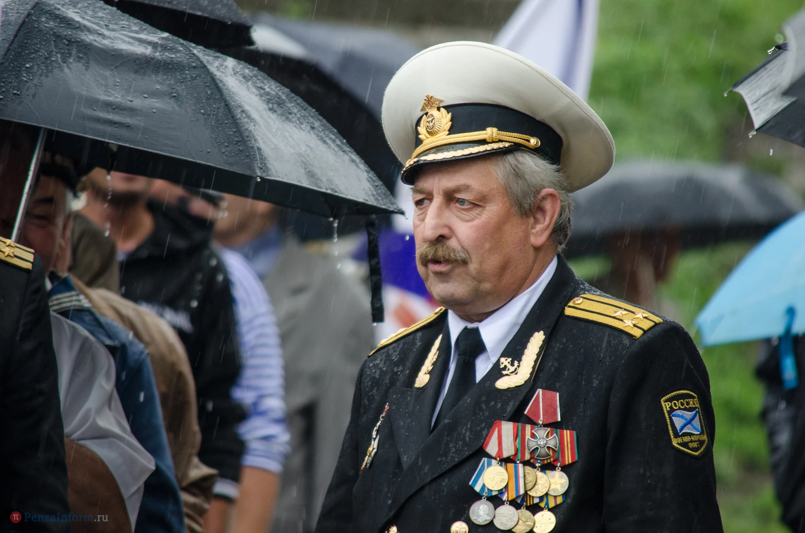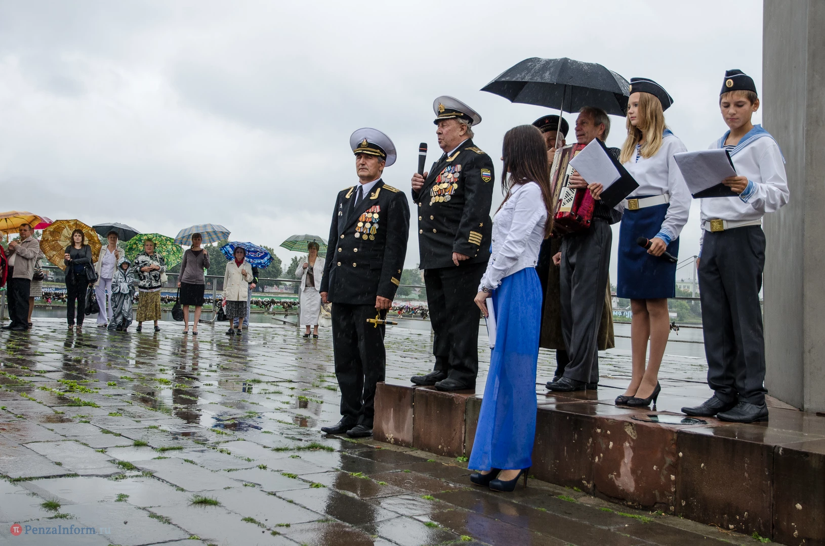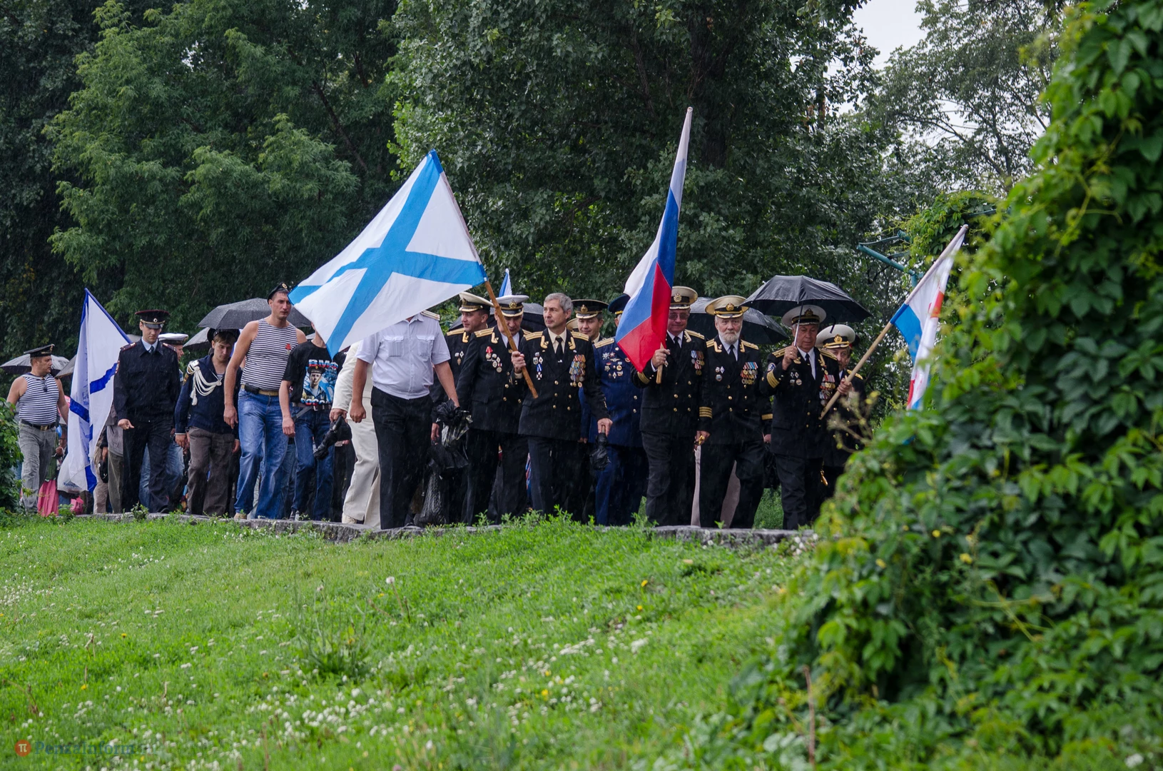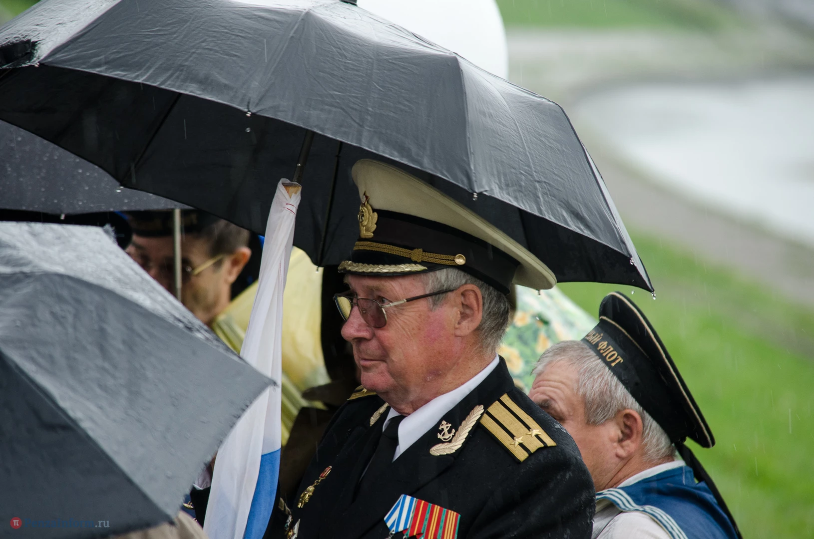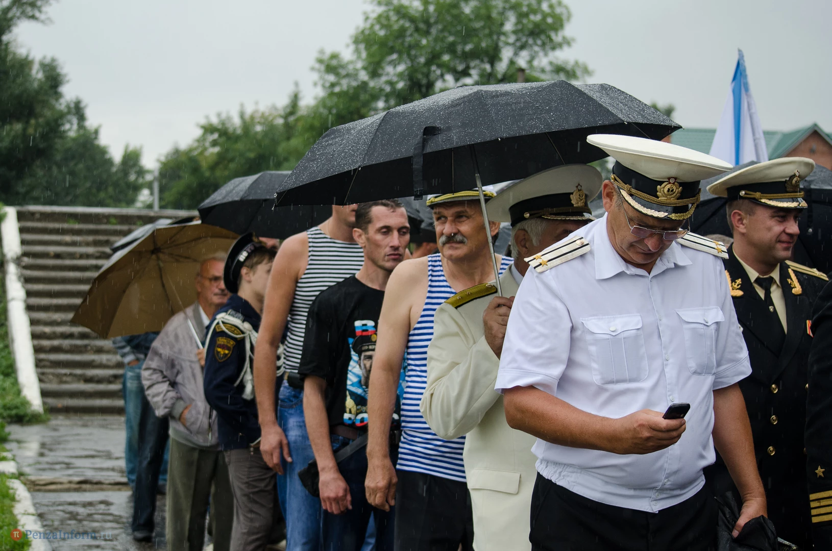 Региональная общественная организация «Пензенское морское собрание» торжественным маршем и построением отметила День ВМФ. Бывалым морякам ливень нисколько не помешал выслушать поздравления от молодежи, председателя Морского собрания, капитана 1-го ранга запаса, Цигвинцева Сергея Алексеевича и всех тех, кому дорог и близок этот день.