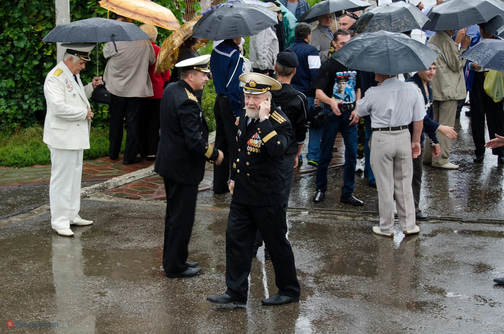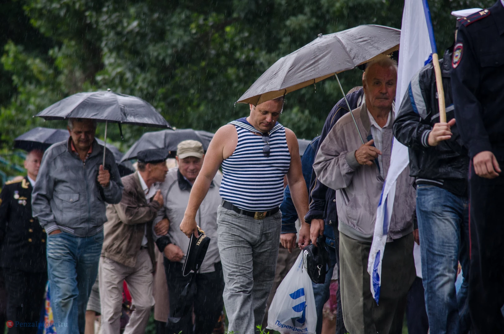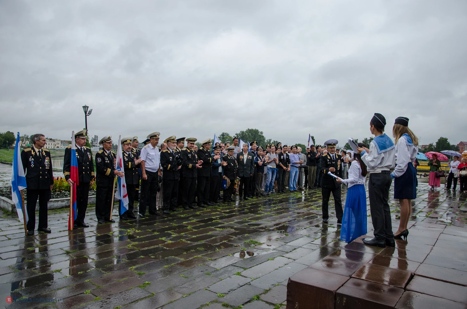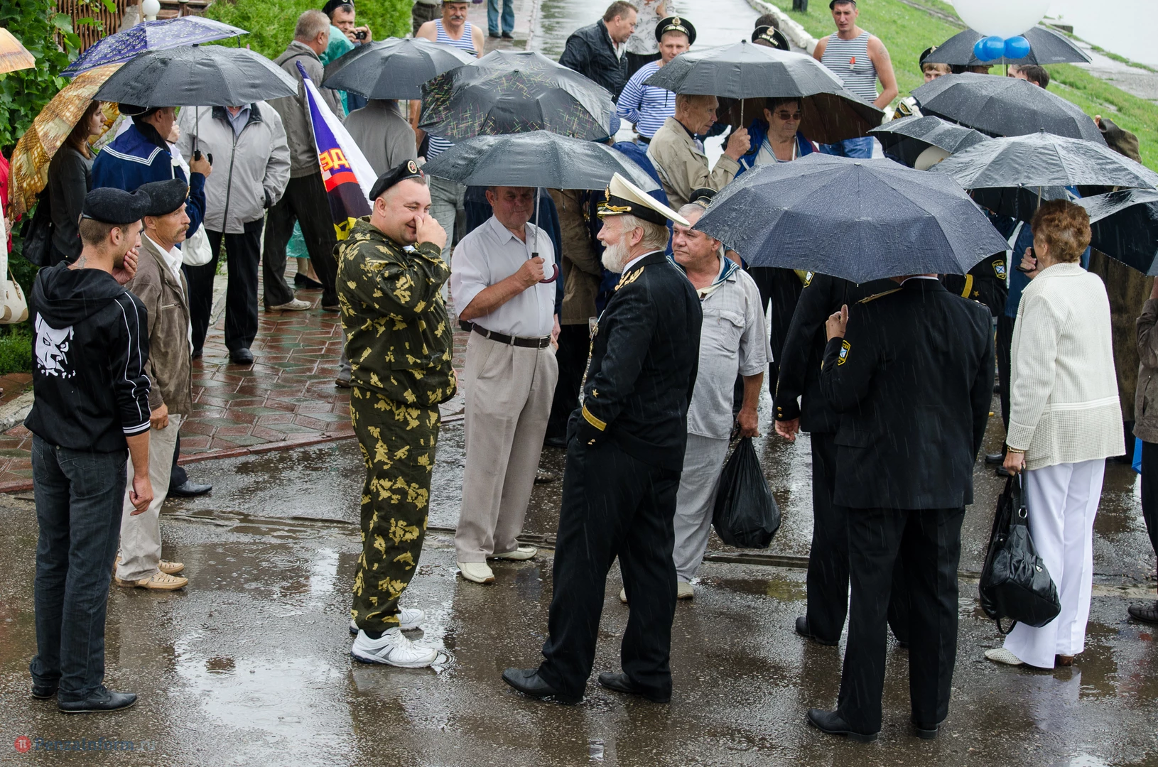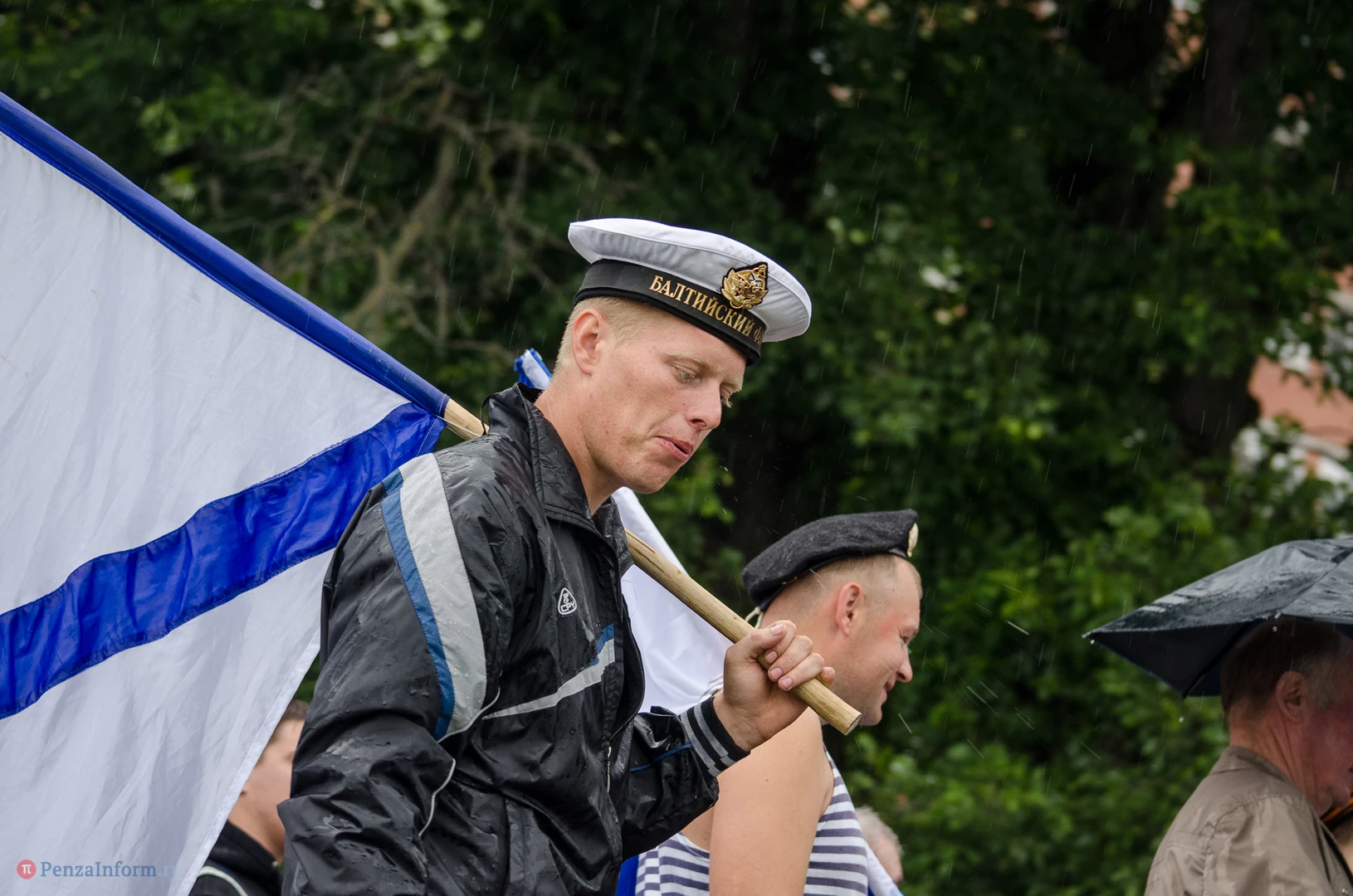 Региональная общественная организация «Пензенское морское собрание» торжественным маршем и построением отметила День ВМФ. Бывалым морякам ливень нисколько не помешал выслушать поздравления от молодежи, председателя Морского собрания, капитана 1-го ранга запаса, Цигвинцева Сергея Алексеевича и всех тех, кому дорог и близок этот день.