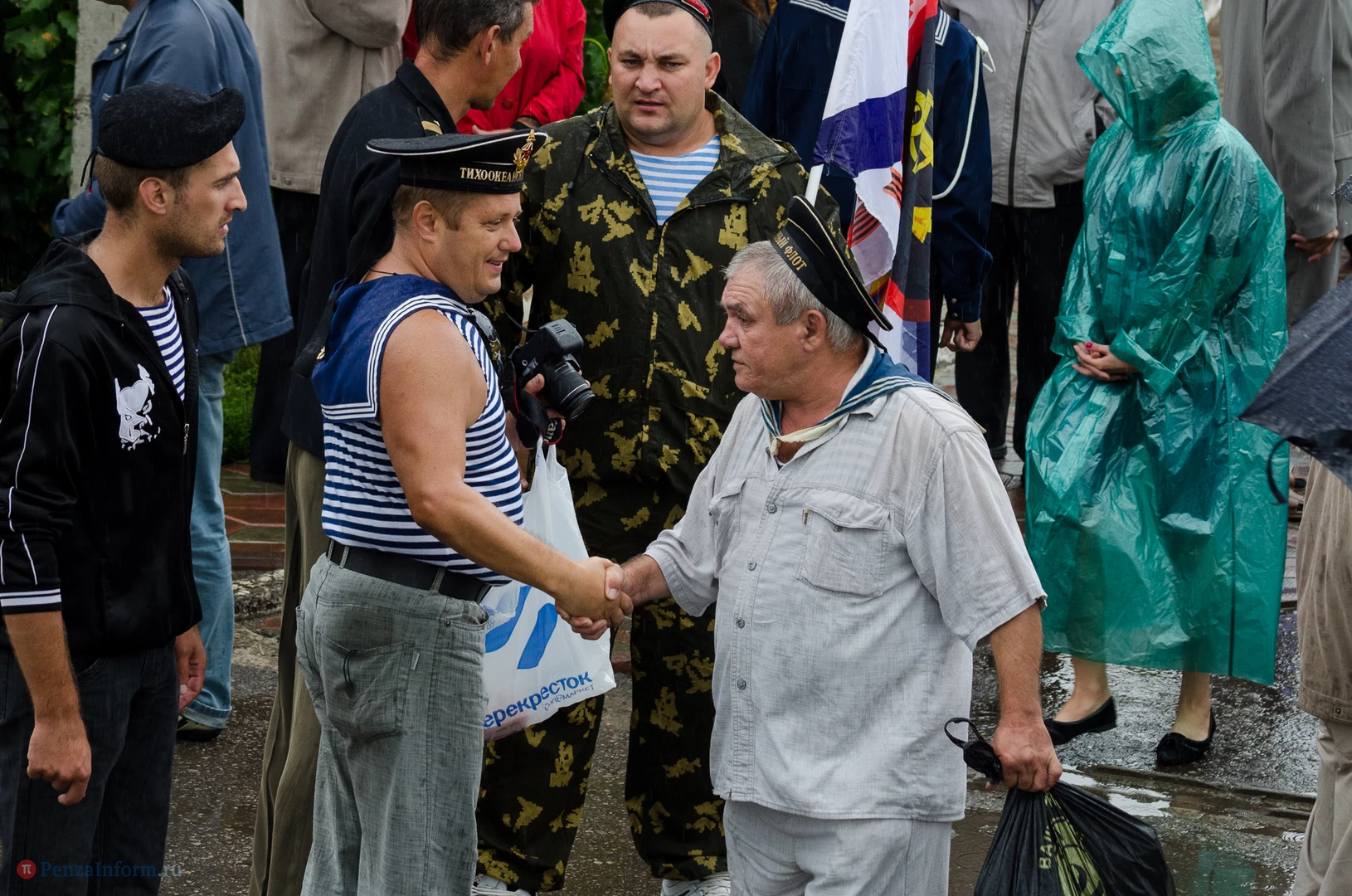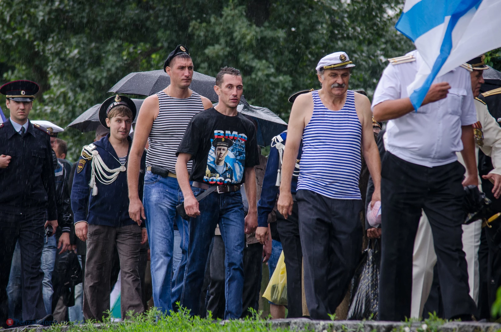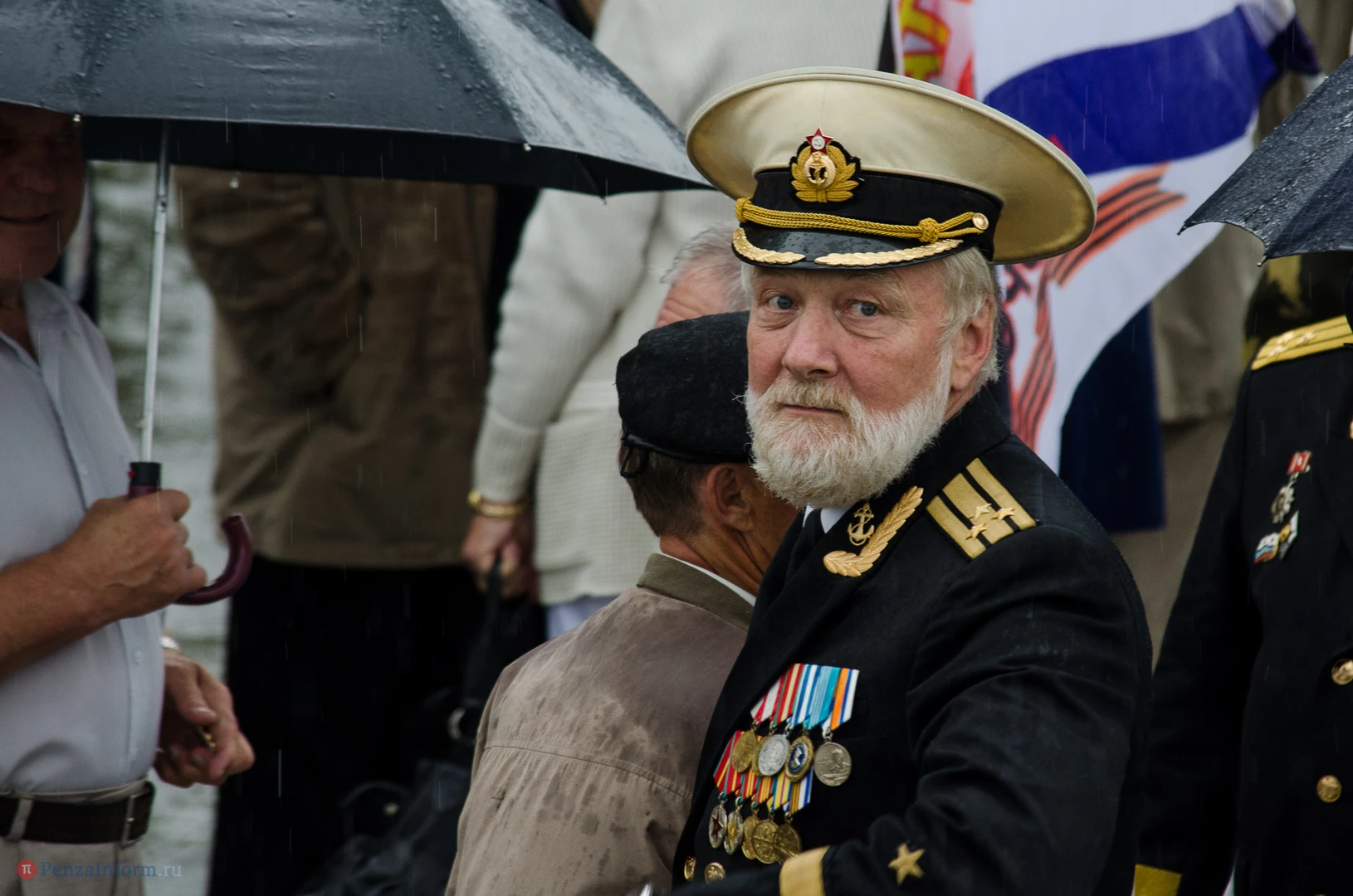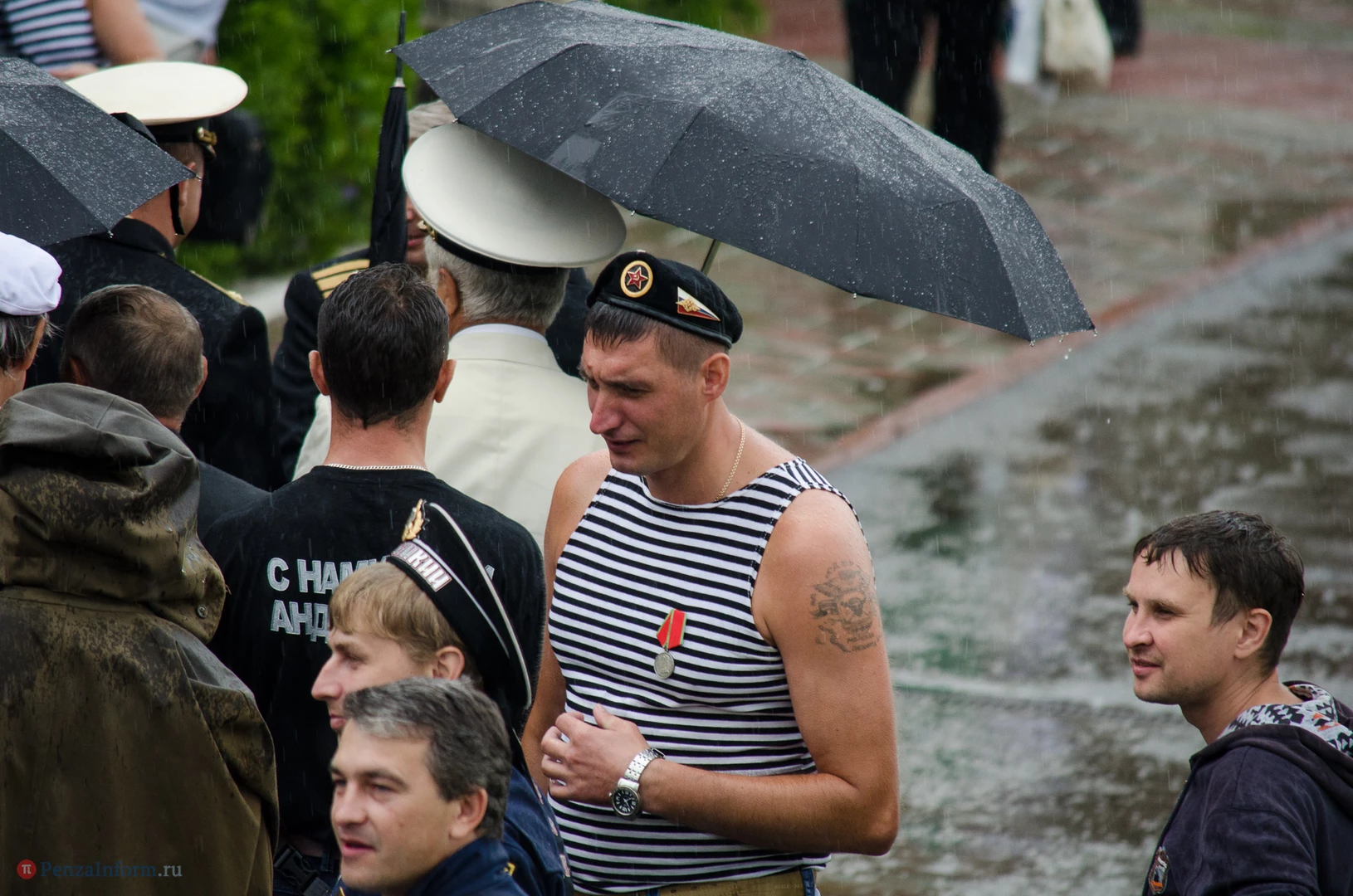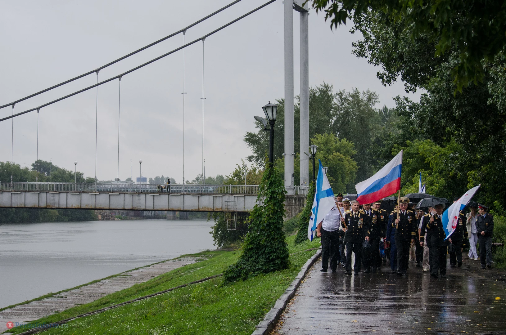 Региональная общественная организация «Пензенское морское собрание» торжественным маршем и построением отметила День ВМФ. Бывалым морякам ливень нисколько не помешал выслушать поздравления от молодежи, председателя Морского собрания, капитана 1-го ранга запаса, Цигвинцева Сергея Алексеевича и всех тех, кому дорог и близок этот день.