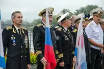 У «Ростка» состоялся небольшой концерт, а завершилась торжественная часть праздника проходом флотилии из катеров под Андреевским флагом.