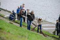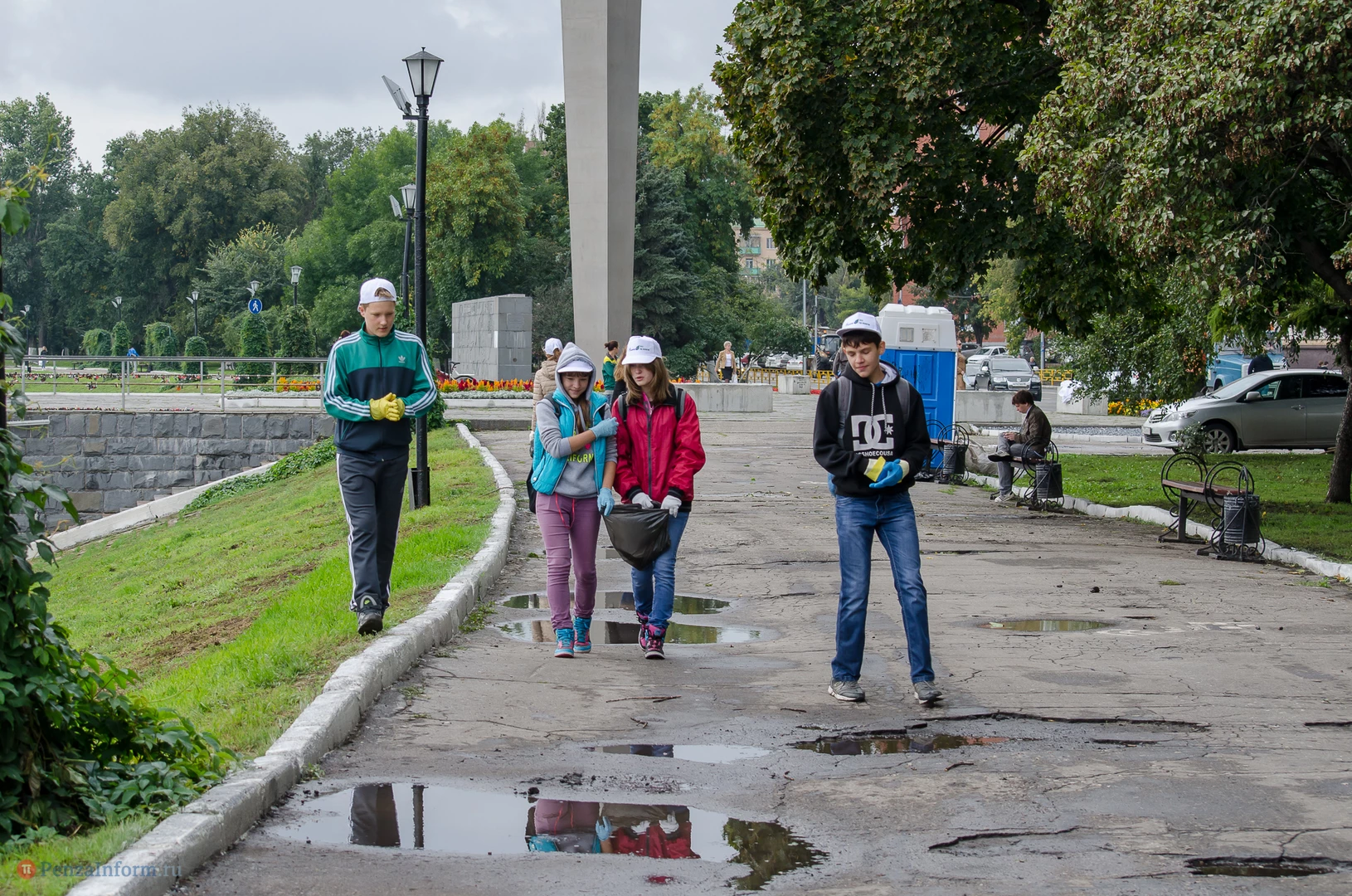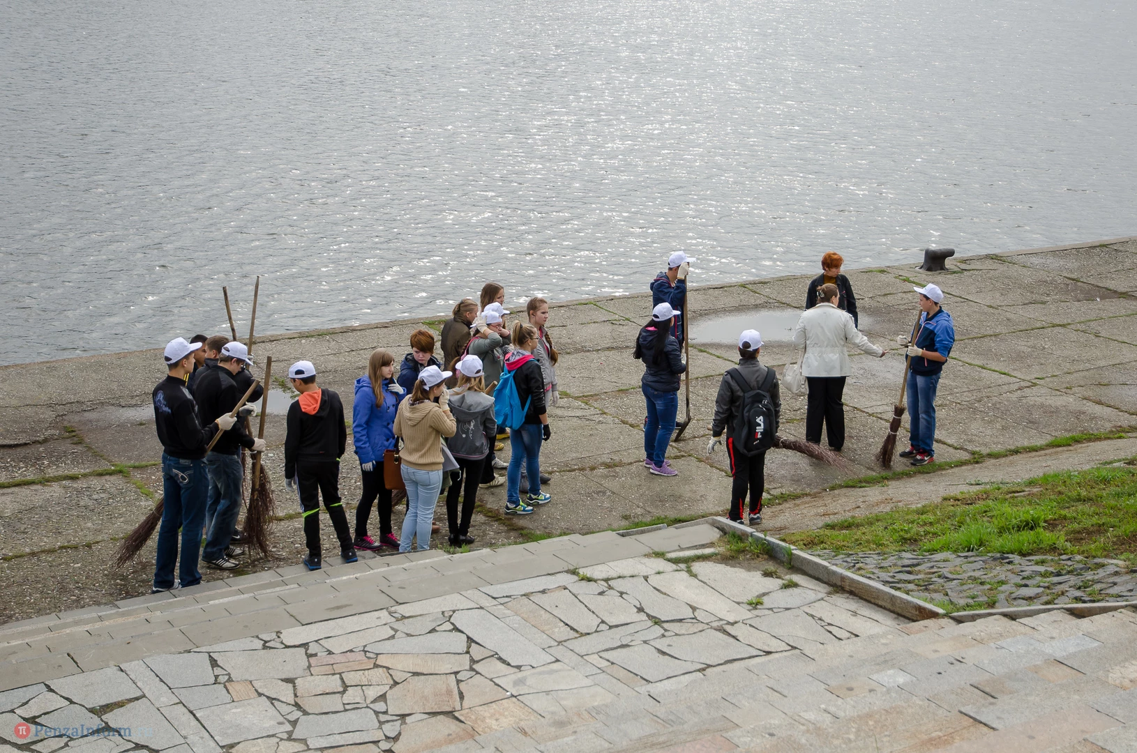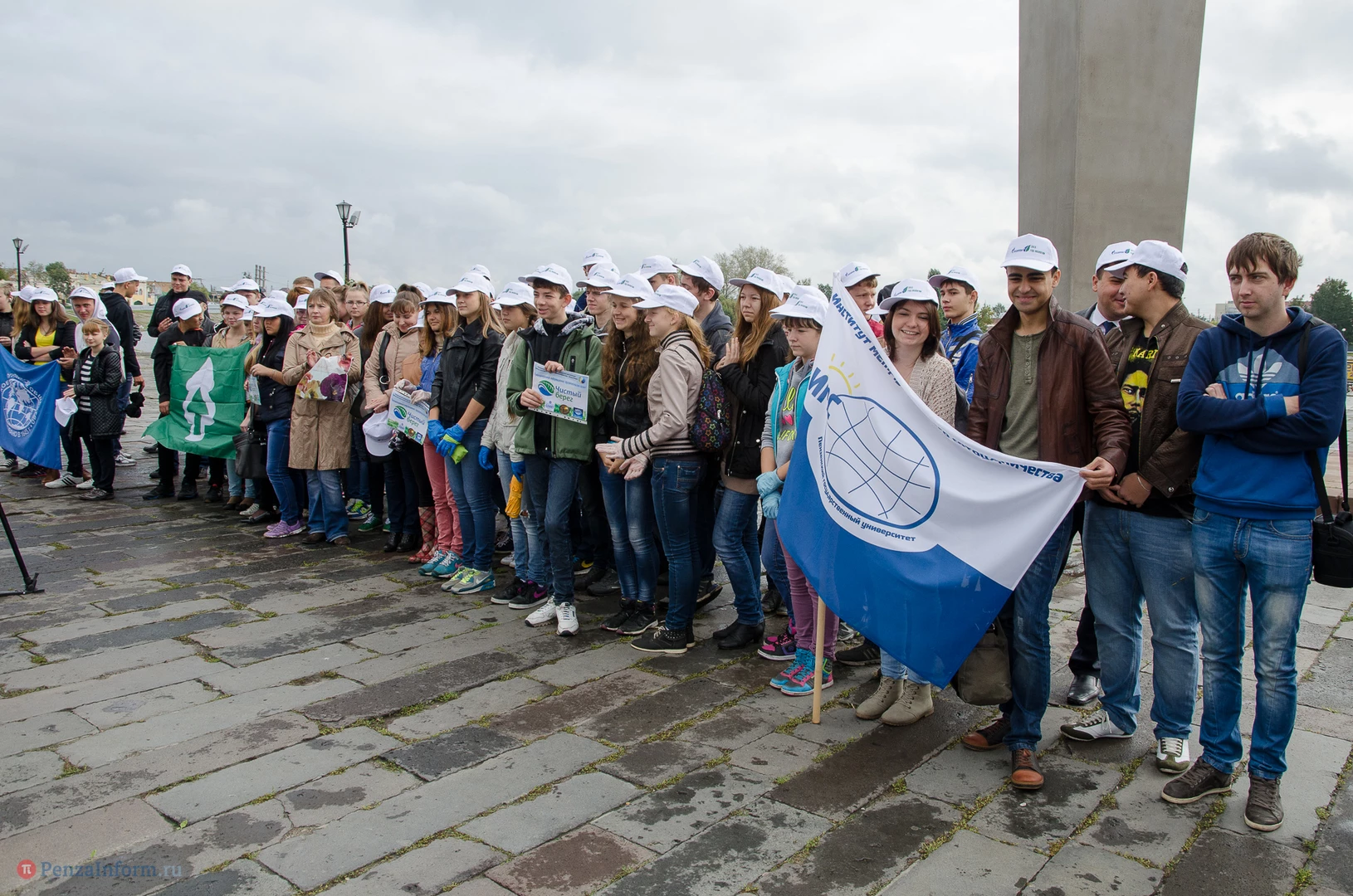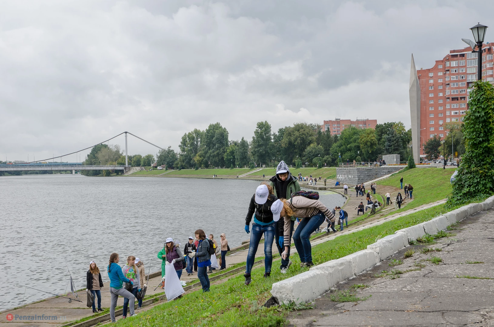 У «Ростка» на набережной собрались пензенские члены Русского географического общества, участники регионального молодежного движения Ассоциации юристов России и молодежного движения «ЭКА», сотрудники областного Росприроднадзора, Горводоканала, студенты ПГУ и Института международного сотрудничества, учащиеся школ № 29, 59 и 60.