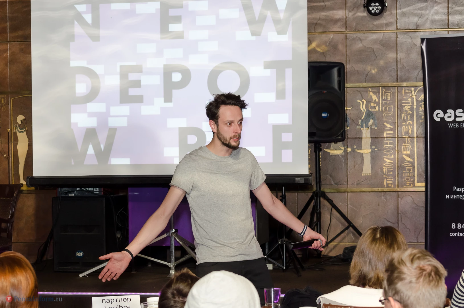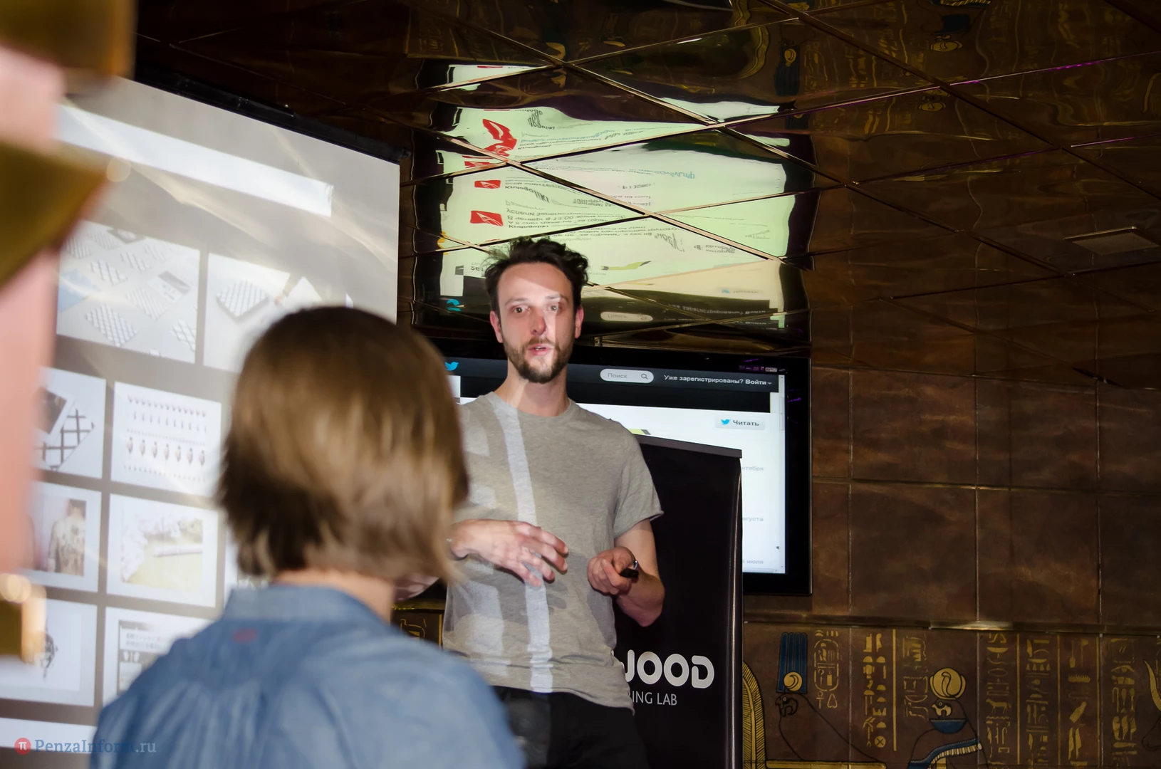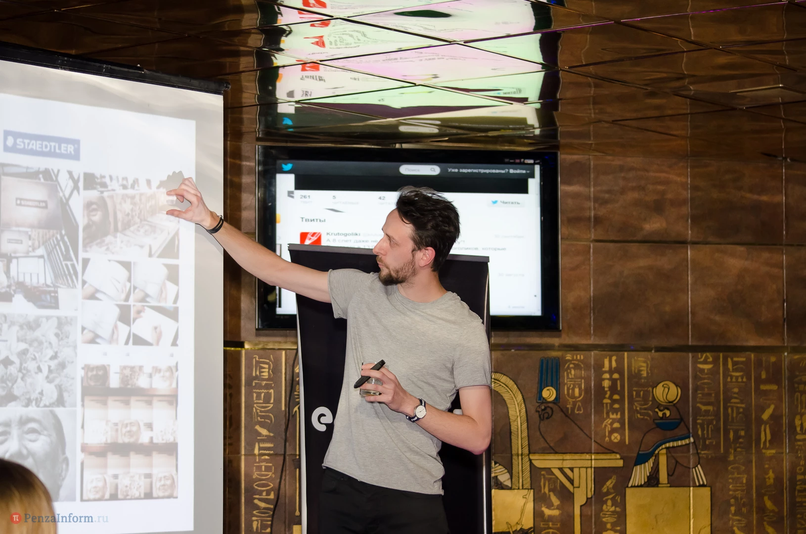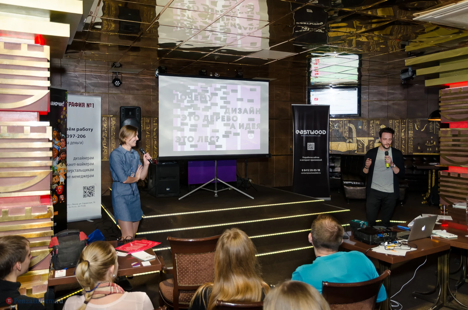 На сцене relax-cafe «Фараон Hall» Александр Загорский и Екатерина Лаврова из брендингового агенства Depot WPF (Москва) обсудили с пензенскими коллегами процесс появления логотипа, источники вдохновения и дизайнерскую номинацию «Каннские львы - 2013», чей дух незримо витал над аудиторией.
