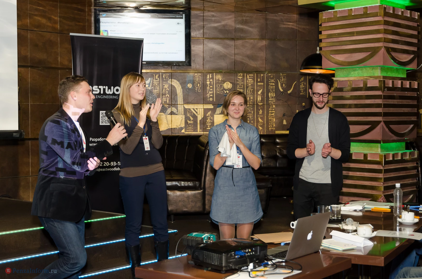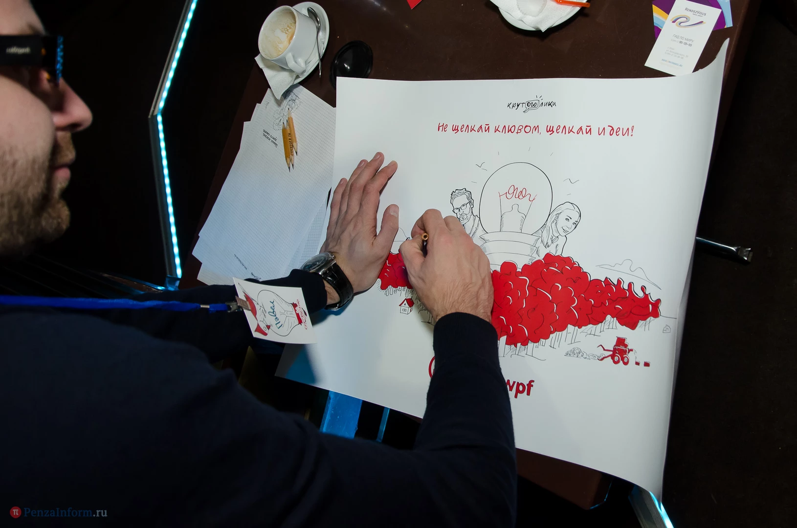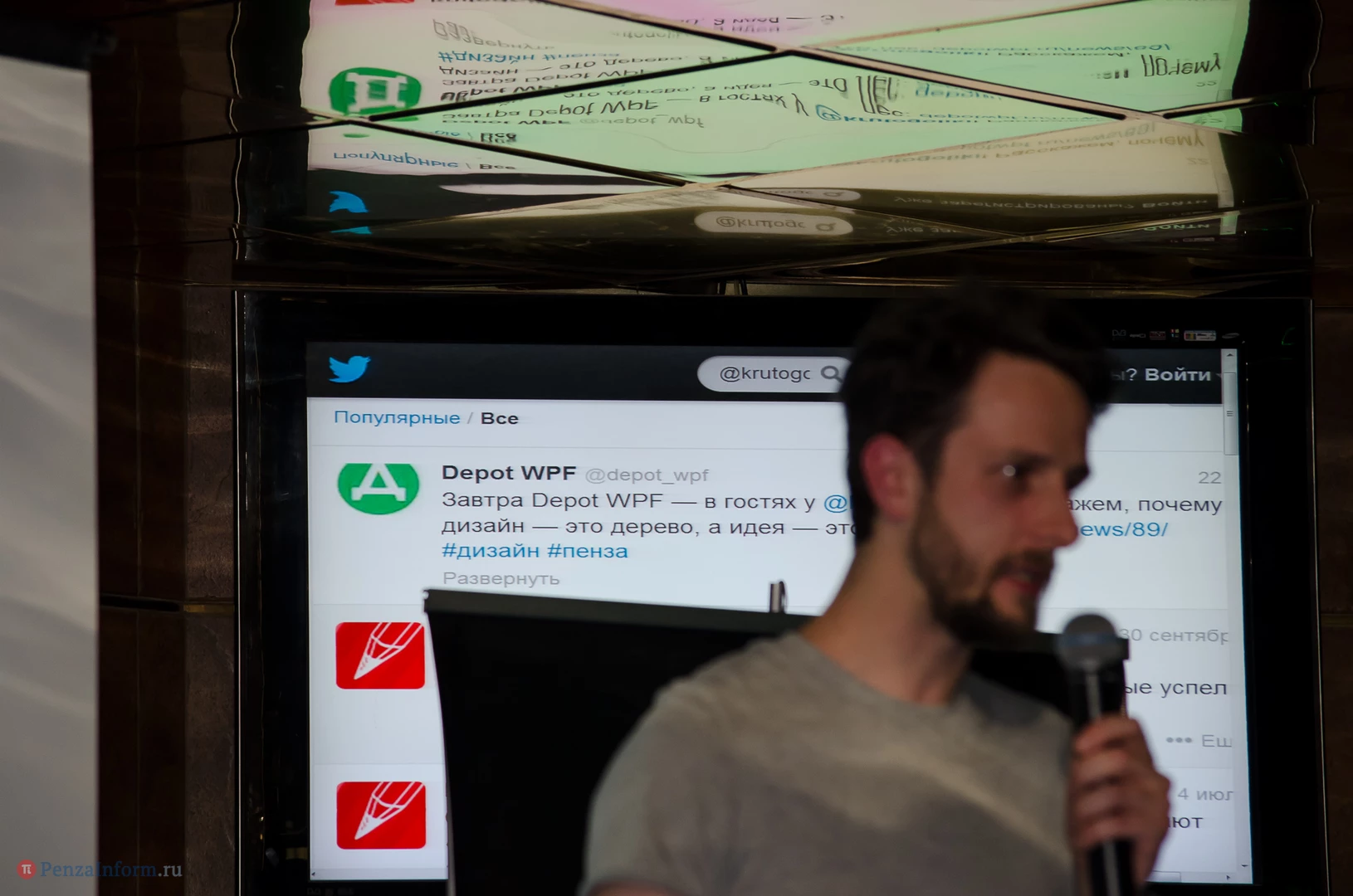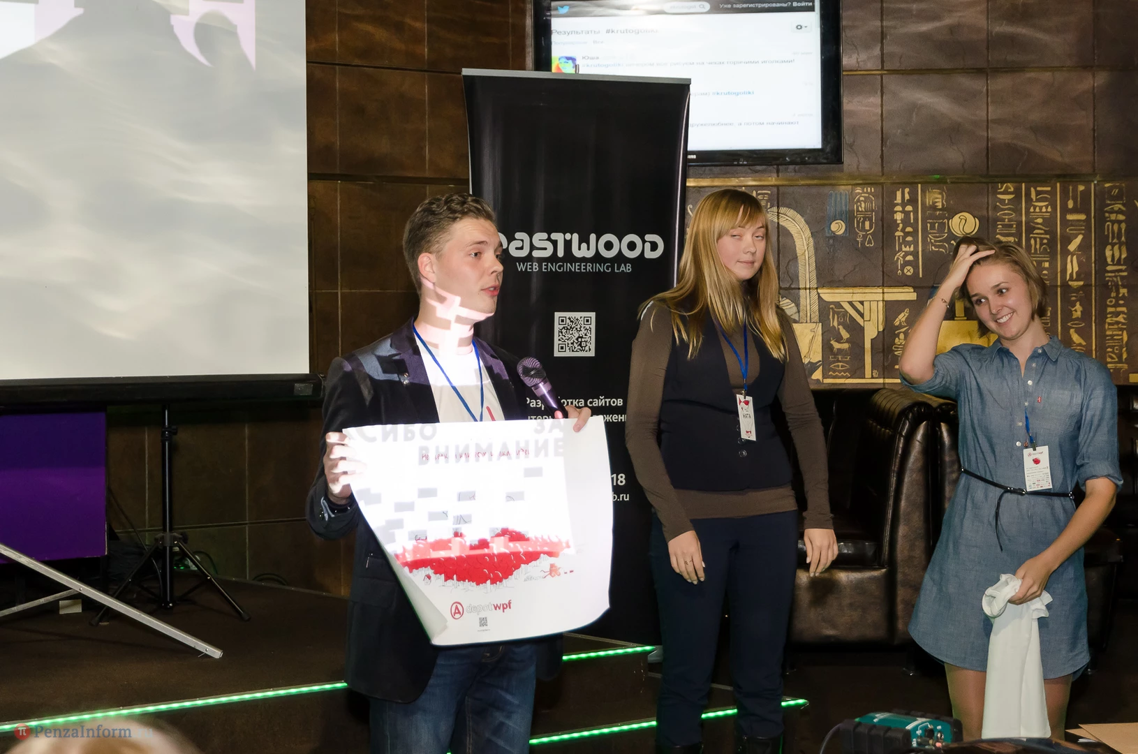 На сцене relax-cafe «Фараон Hall» Александр Загорский и Екатерина Лаврова из брендингового агенства Depot WPF (Москва) обсудили с пензенскими коллегами процесс появления логотипа, источники вдохновения и дизайнерскую номинацию «Каннские львы - 2013», чей дух незримо витал над аудиторией.