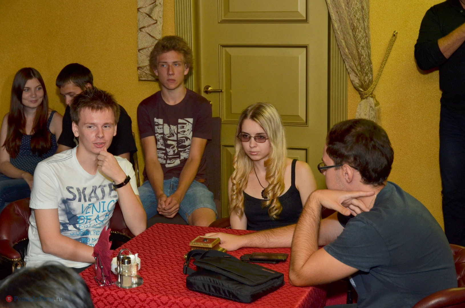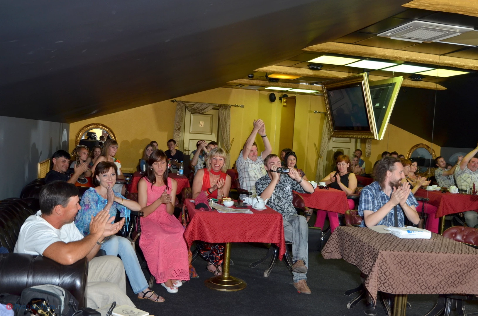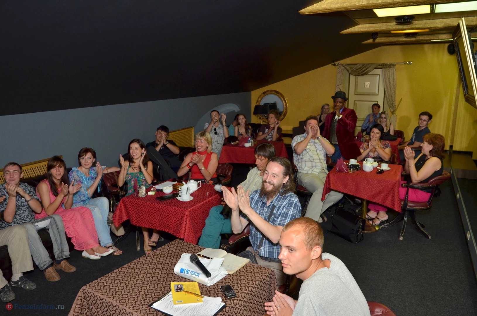 На «Золотую Пирамиду» пришли выступить и пообщаться поэтессы Пензенского поэтического клуба «Берега» и поэты арт-проекта «Десятая муза». Давид Курума начал традиционное ток-шоу в relax-cafe «Фараон-Hall» с представления Марины Герасимовой и Юрия Квитки, их коллеги по цеху продолжили программу.