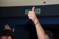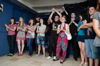 В рок-кафе «Доминанта» группа «КроН», Сергей Косарев (группа «Доминанта»), другие исполнители и весь зал пели песни Цоя.