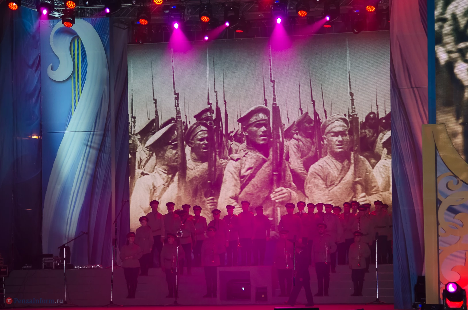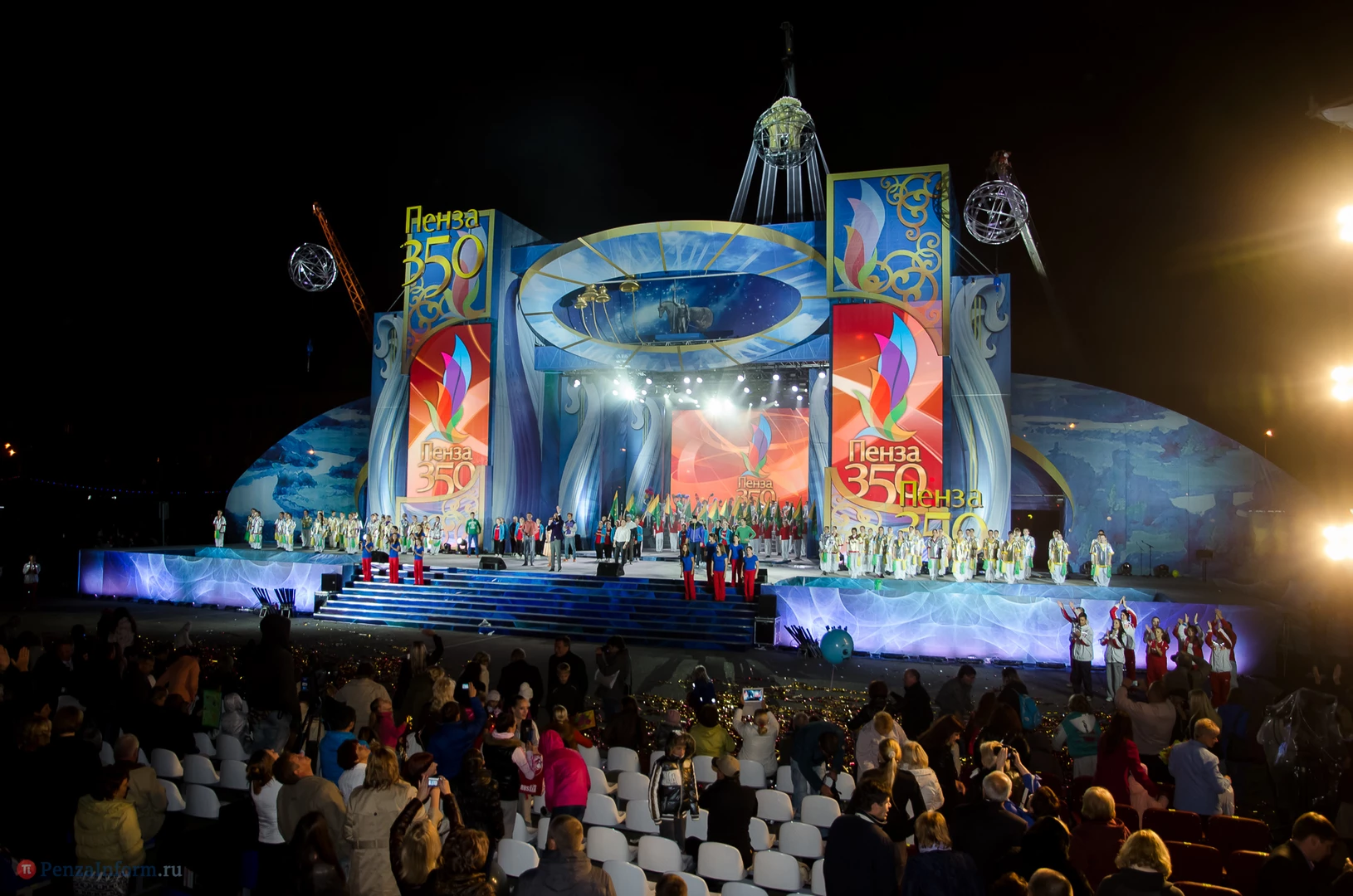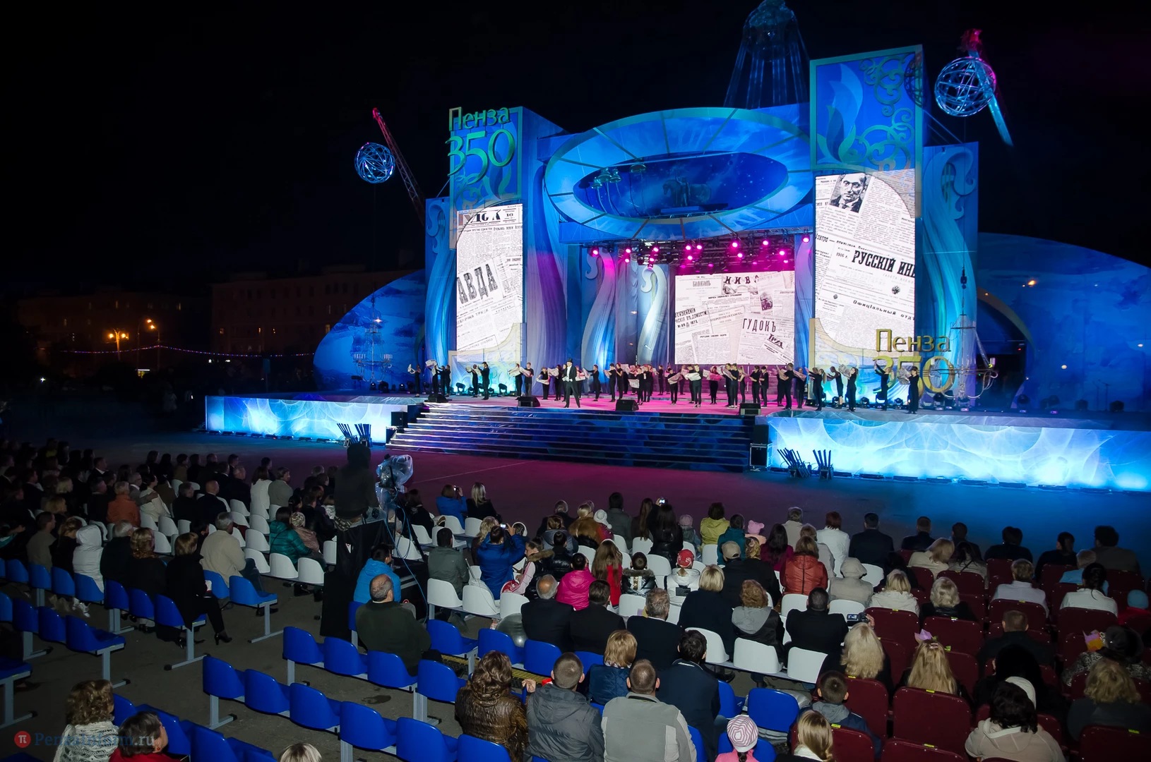 Вечером 14 сентября на площади Ленина прошло мультимедийное театрализованное представление «Во славу России, во благо людей!». На сцене были гимнасты, циркачи, танцоры, свет, музыка и даже вода. Но это не просто концертные номера, это целая история, в том числе и история Пензы.
