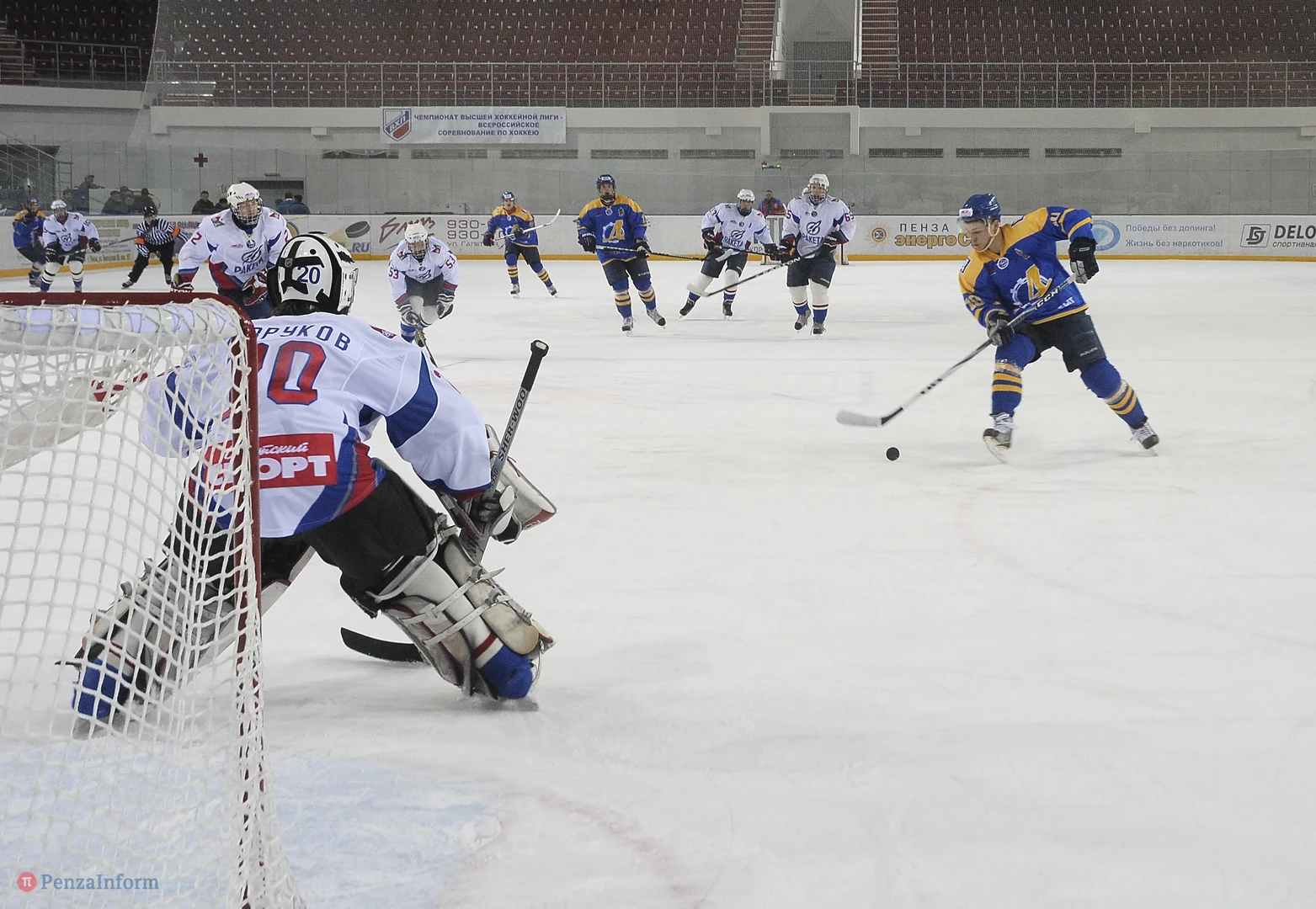27 декабря пензенский «Дизелист» провел повторную игру с «Ракетой» из Сарова в рамках первенства Молодежной хоккейной лиги. Напомним: 26 декабря пензенская команда выиграла со счетом 3:0. Вторая встреча тоже закончилась нашей победой - 3:1.