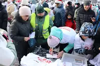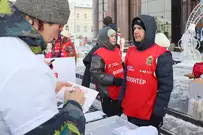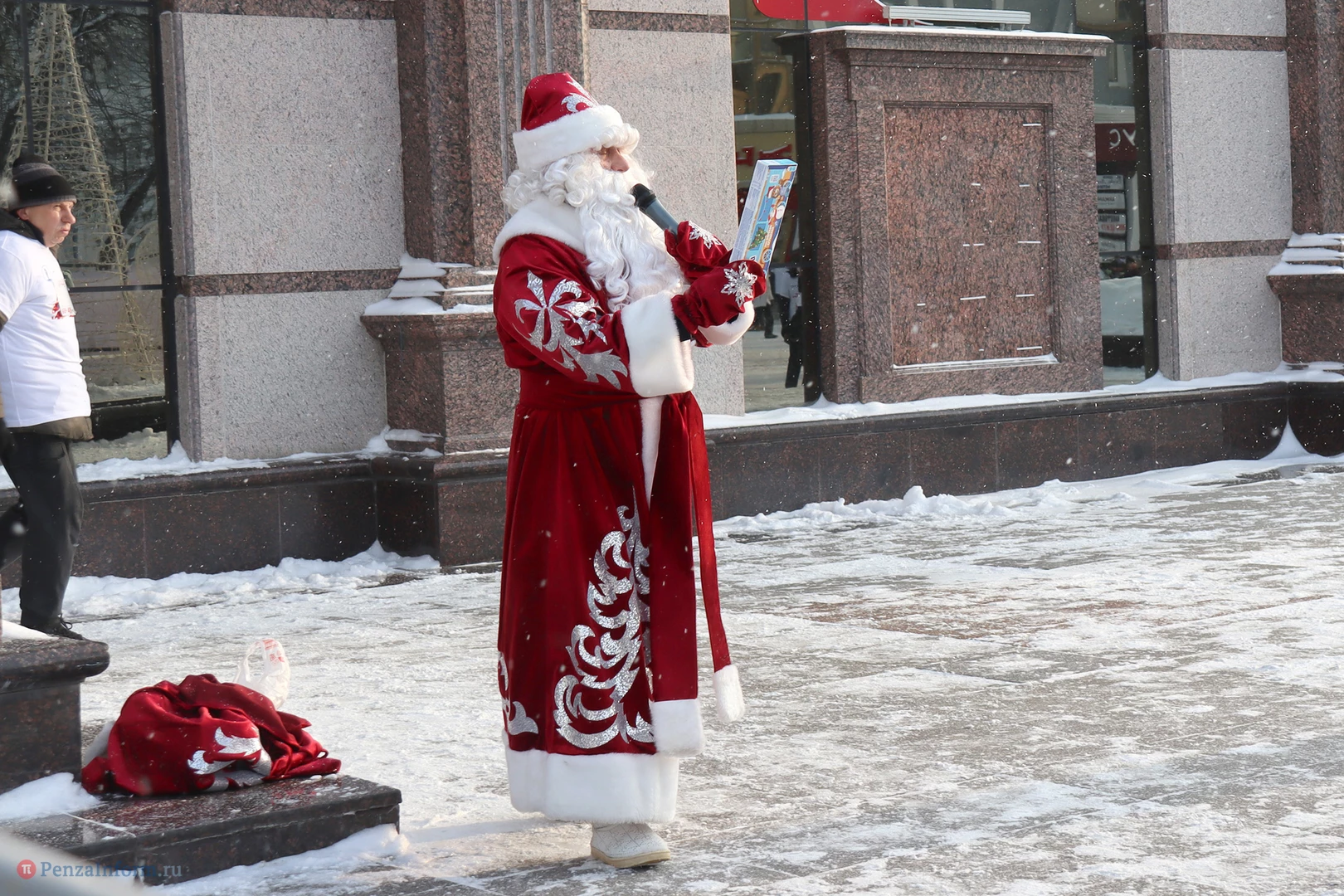Настроение горожанам создавал Дед Мороз. Для участников подготовили горячие напитки и сладости.